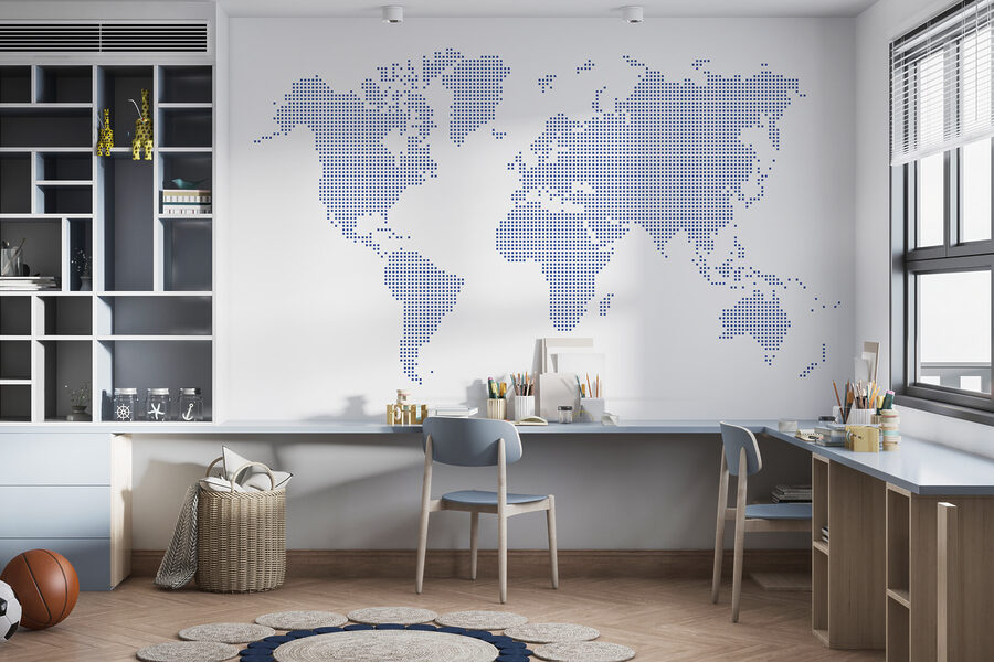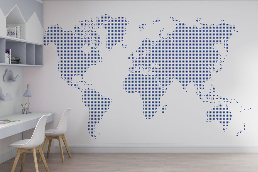 Bring the globe to your living space with the “Map of the World” wall mural. It’s like having a world map that whispers stories of distant lands, right on your wall. Imagine sipping coffee while tracing your finger over continents, dreaming of adventures in places you’ve visited—or those still on the bucket list. The clean, dotted design makes it a perfect backdrop, fitting for cozy reading corners or lively discussions with friends. Plus, it adds a splash of wanderlust to any room. It’s not just decor; it’s a conversation starter. Exploring the world has never looked this good!