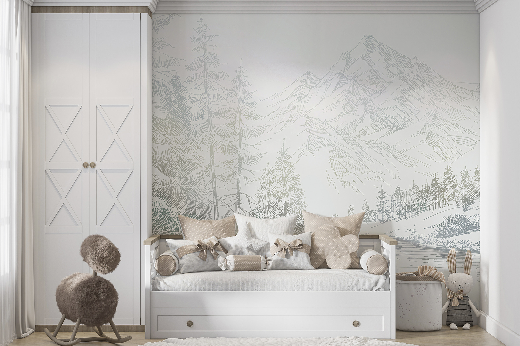 Transform your space into a serene retreat with this stunning wall mural, “Drawing of a Mountain.” Picture this: a gentle mountain landscape, all sketched out like an artist’s daydream. It’s a calming piece that whispers tranquility. Perfect for those days when you want to escape without leaving your living room.