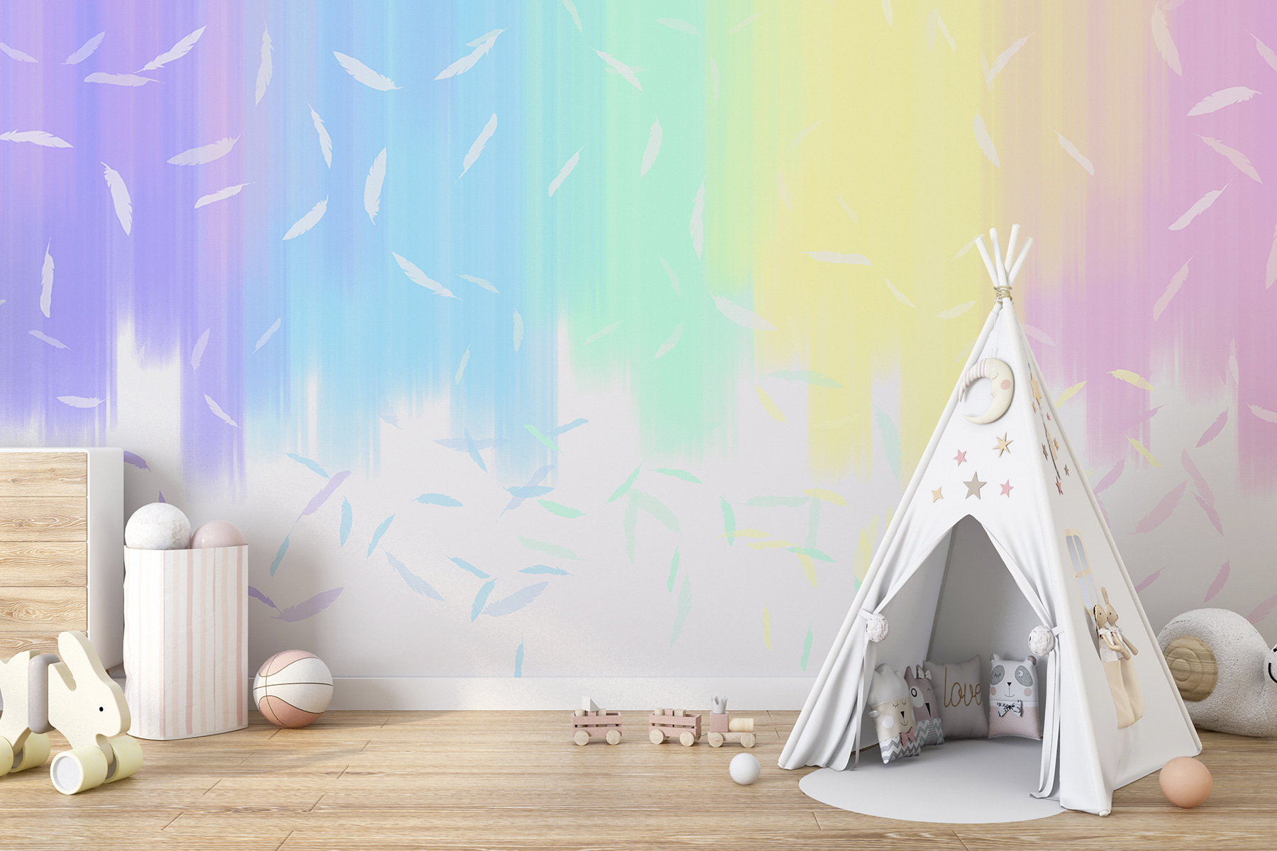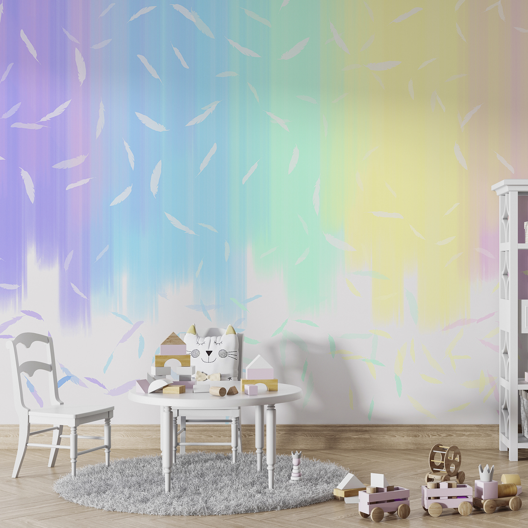 Transform any space with this whimsical mural of white feathers dancing on a serene blue background. It’s like having a gentle breeze inside your home—who wouldn’t want that? This isn’t just wall art; it’s a moment captured in time, evoking feelings of tranquility and whimsy. Imagine cozying up with a cup of tea, surrounded by these soft, floating feathers. They bring a hint of nature indoors, making it feel airy and light. Whether it’s covering the whole wall or just a small section, it’s sure to spark delightful conversations. Perfect for brightening up a bedroom or adding character to a living area, it’s almost like bringing a slice of sky right to your walls. Plus, it might just inspire some thoughts about flying high—metaphorically speaking, of course!