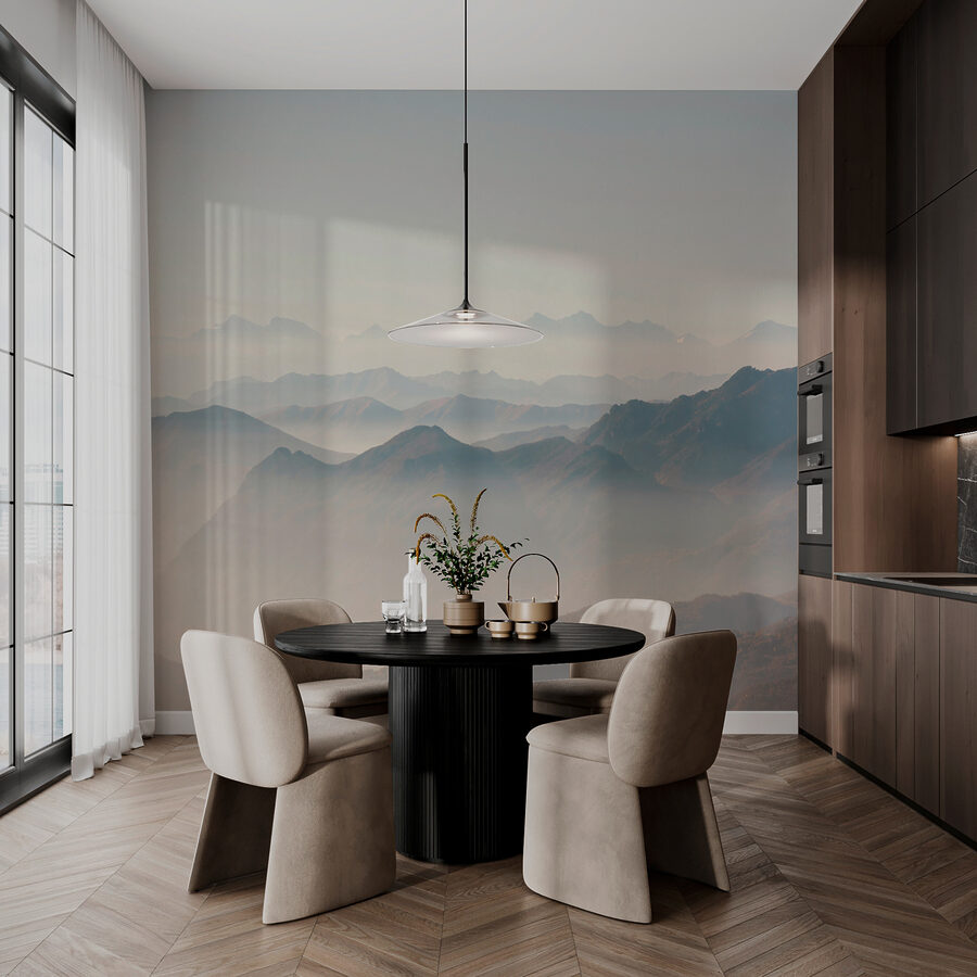Transform your space into a serene escape with the Wall Murals Mountain Range with Fog. Imagine waking up to soft, hazy peaks that seem to whisper stories of adventures waiting to be had. This mural doesn’t just fill a wall; it creates a mood—perfect for daydreaming, sipping coffee, or planning your next mountain getaway. Picture cozy evenings spent surrounded by soothing shades of nature, where every glance evokes calmness and wonder. Let it bring a breath of fresh air—even if all that’s outside is your backyard. This isn’t just décor; it’s an invitation to wander without leaving home.