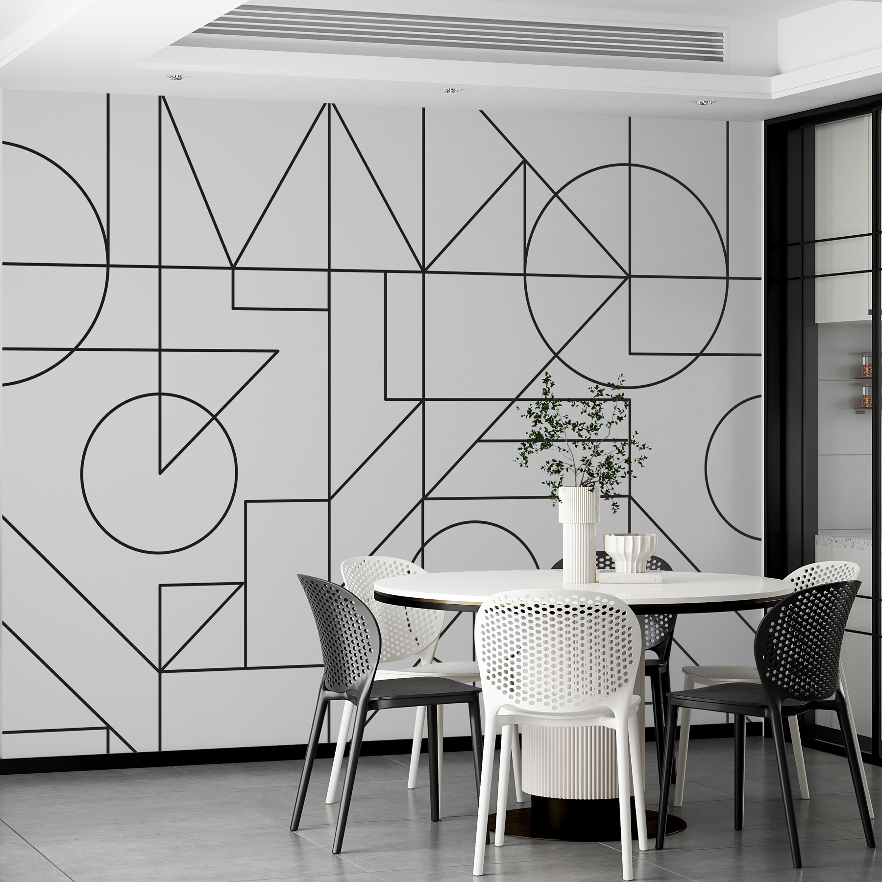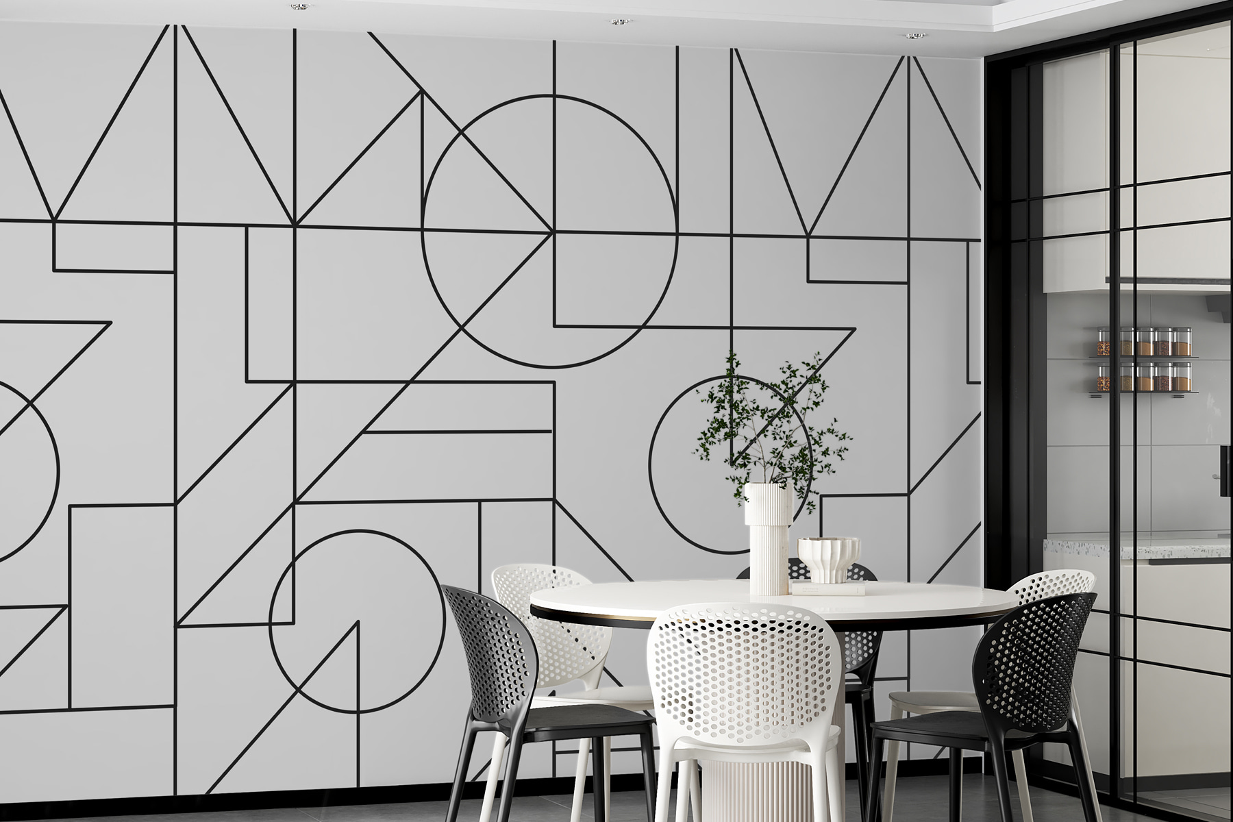 This black-and-white mural is like a breath of fresh air for any room. Imagine stepping into your space and being greeted by a bold, geometric design that sparks joy and inspiration. The mix of shapes dances across the wall, effortlessly drawing the eye. It’s perfect for that blank wall crying out for personality.