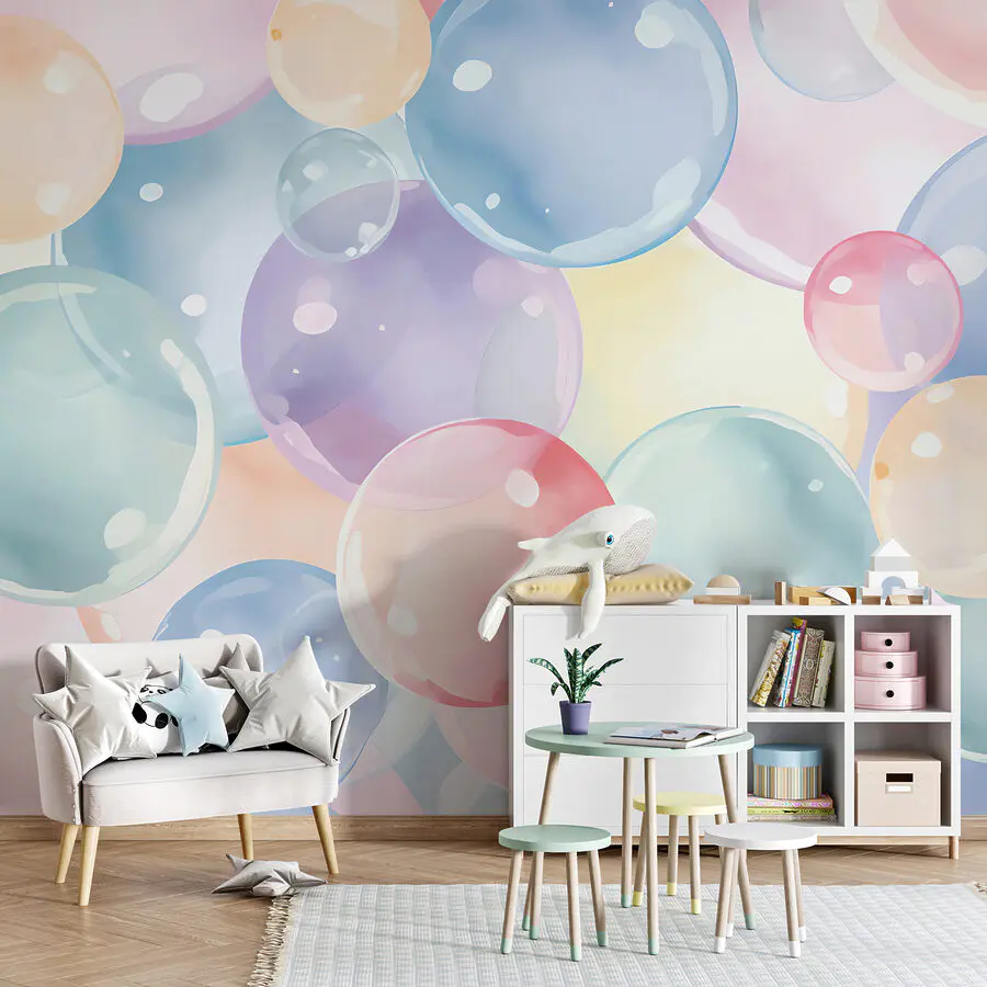 Transform that dull wall into a whimsical wonderland with the “Colorful Bubbles Floating in Harmony” mural! Imagine stepping into your space and being greeted by a vibrant dance of iridescent bubbles, floating serenely like little orbs of joy. The pastel palette adds a soft touch that’s just right for any room—be it a cozy living area or a dreamy nursery.