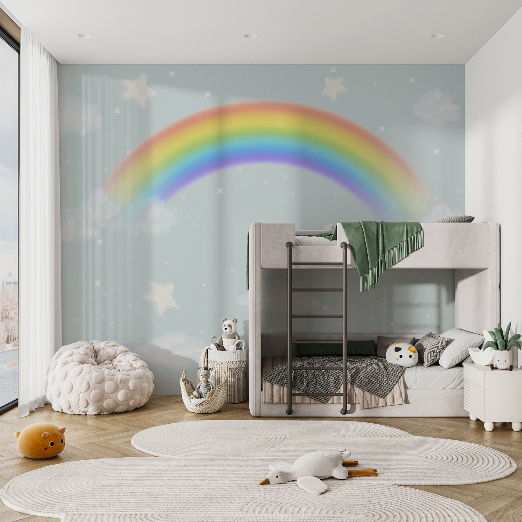 Looking to add a sprinkle of charm to your space? This charming mural, “White Star on a Blue Background,” offers a playful escape into a dreamy world. Picture this: your walls transformed into a tranquil sky dotted with soft clouds and twinkling stars. It’s like bringing a piece of the peaceful outdoors inside, minus the pesky insects.