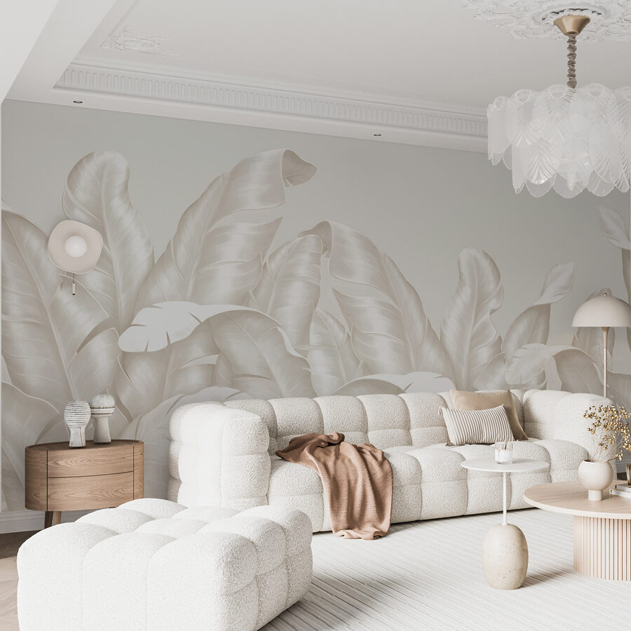 Transform any space with this stunning mural featuring elegant leaves in soft white hues. It’s like a gentle breeze of nature indoors—quiet, serene, and oh-so-inviting. Imagine waking up to a wall that feels like a leafy embrace, perfect for sipping coffee while dreaming of tropical escapes. The subtle tones blend in beautifully with any décor, adding a touch of sophistication without shouting for attention. Plus, it’s a great conversation starter—guests will definitely be drawn in. Bring a slice of nature’s calm into your home, and who knows? You might just find yourself feeling a bit more zen.