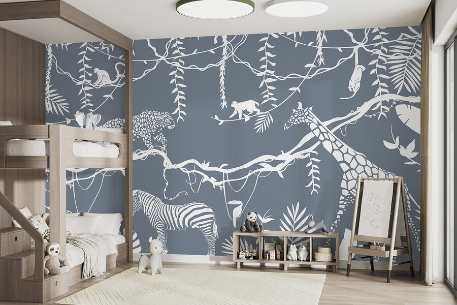 Transform any room into a safari with this enchanting wall mural featuring playful zebras and graceful giraffes. Imagine stepping into your space and instantly feeling the warmth of the savanna, where these majestic creatures roam. The muted colors give a calming vibe, perfect for a cozy reading nook or a lively playroom. Picture kids giggling, spotting the hidden monkeys among the leaves. Who wouldn’t want a piece of nature right at home? This mural isn’t just decor; it’s a ticket to daily adventures without the hassle of packing! Whether you’re an animal lover or simply seeking a unique touch, this wallpaper adds that special flair. Plus, it’ll definitely impress guests—talk about conversation starters!
