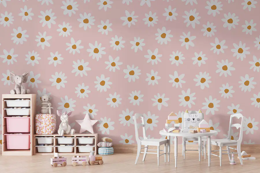 Brighten up any room with this delightful wall mural featuring cheerful white flowers dancing on a soft pink background. It’s like a breath of fresh air, bringing a touch of nature right into your space. Imagine waking up to this charming pattern—it’s sure to spark those good vibes! Perfect for bedrooms, nurseries, or cozy reading nooks, it creates a warm ambiance that just says, “Stay awhile.” Plus, who doesn’t love a little floral flair? Just don’t be surprised if your friends start asking for a “flower selfie” with this beauty! It’s the kind of decor that makes every day feel a little brighter.