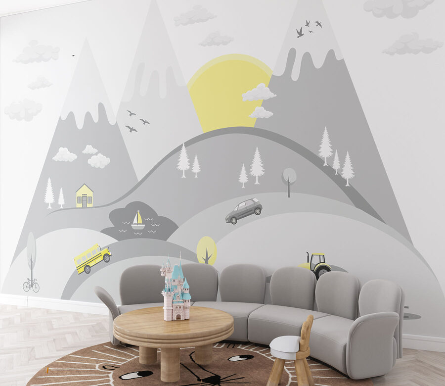 Brighten up any room with this cheerful wall mural featuring a classic yellow school bus zooming through a scenic landscape. Imagine the joy this would bring to a child’s room or a cozy play area—it’s like a trip down memory lane, full of adventure and nostalgia. The soft mountains and gentle sun add a tranquil vibe, perfect for sparking imagination. Plus, those little details—a sailing boat, a friendly tractor—make it feel alive, as if there’s always something new to discover. This mural doesn’t just decorate a wall; it invites stories, daydreams, and a sprinkle of fun into every day. Create a space that feels both adventurous and comforting, where every glance gets a smile. Perfect for kids or the young at heart!