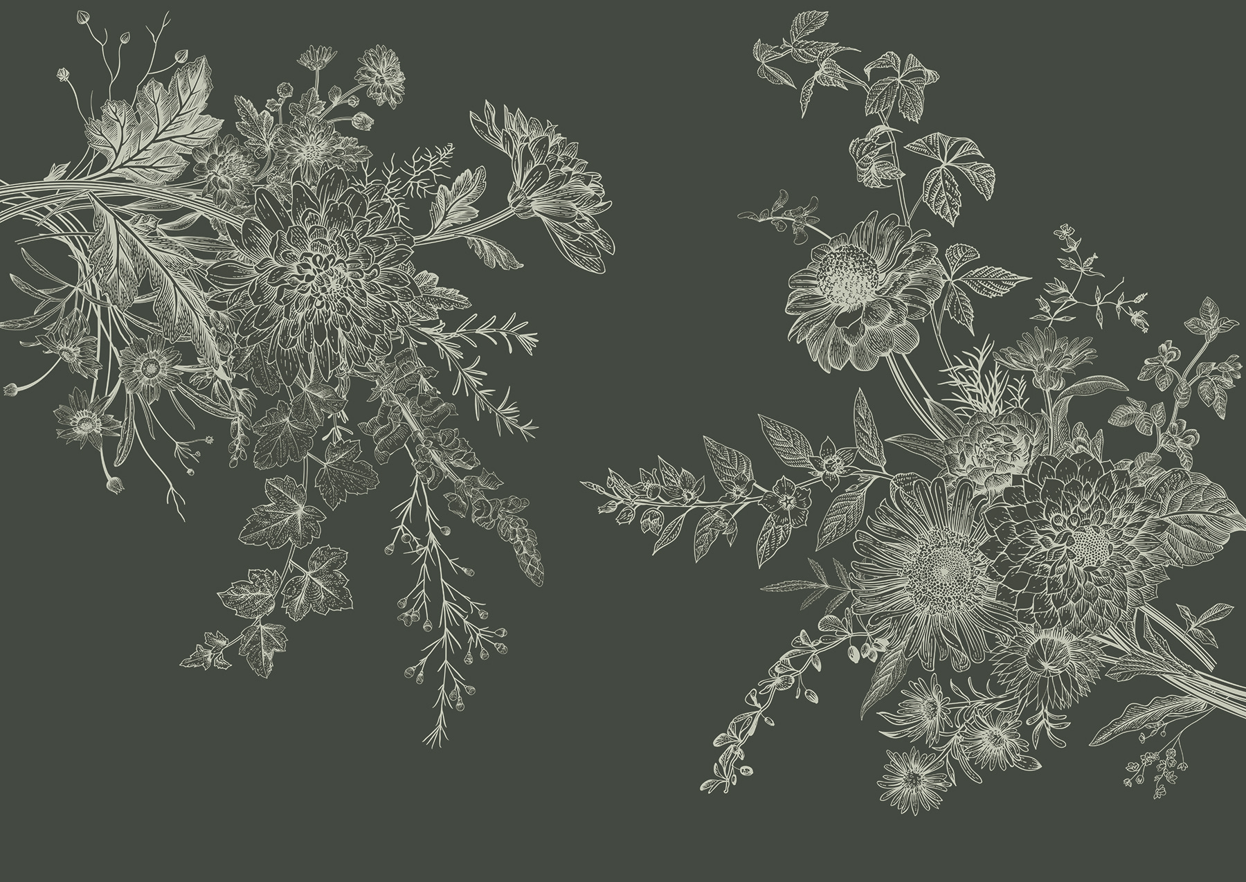 Wall murals Elegant floral sketch on a dark background. (SKU: w00381)