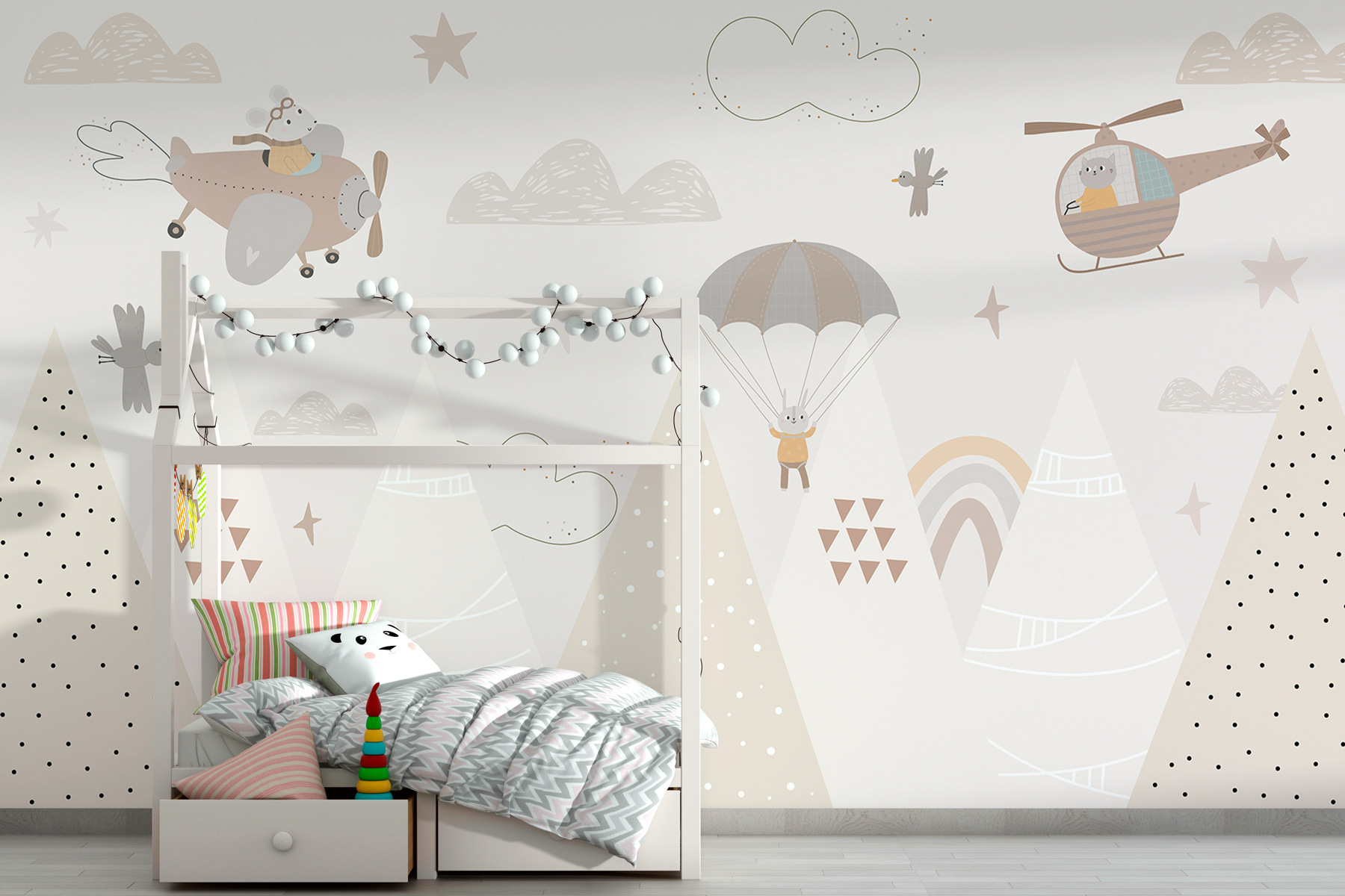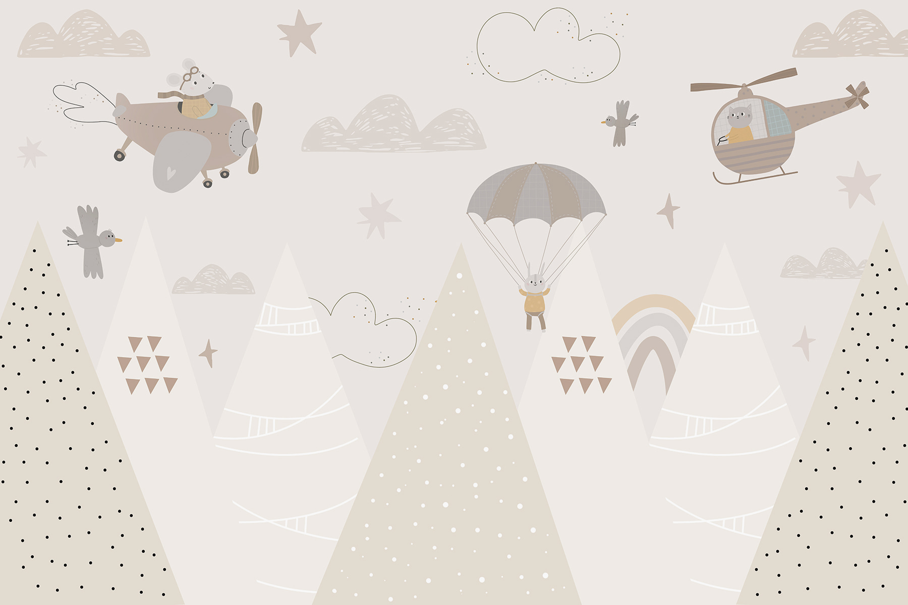 Transform your space into a whimsical adventure with the “Cartoon Mouse in a Plane” wall mural! Picture this: a charming little mouse, goggles on, soaring through a cloud-filled sky, flanked by playful birds and a paragliding rabbit—pure joy. This mural brings a soft, calming palette to your walls while tickling the imagination. It’s like stepping into a storybook every day, a perfect backdrop for a child’s room or a playful nook in your home. Just imagine the smiles it’ll spark! Little ones will dream of their own sky-high escapades, creating memories that stick like glue. Who wouldn’t want that sprinkle of magic?