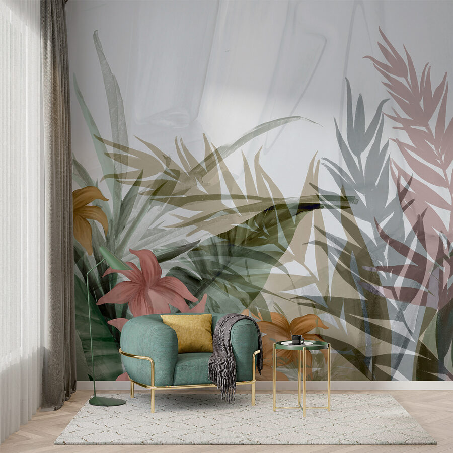 Transform your space with this stunning wall mural featuring an abstract floral design, where layered leaves dance across a soft backdrop. Imagine stepping into a room that’s like a breath of fresh air, where every glance feels like a stroll in a peaceful garden. The muted colors lend an effortless charm that’s perfect for cozy evenings or lively brunches with friends. It’s like nature gently peeking through your walls, ready to spark joy or calm the mind. Plus, it’s a fabulous conversation piece—watch guests lean in and admire the beauty. Perfect for any nature lover or anyone simply looking to spruce things up a bit!