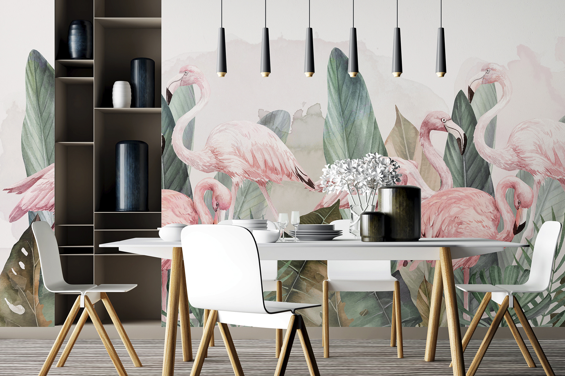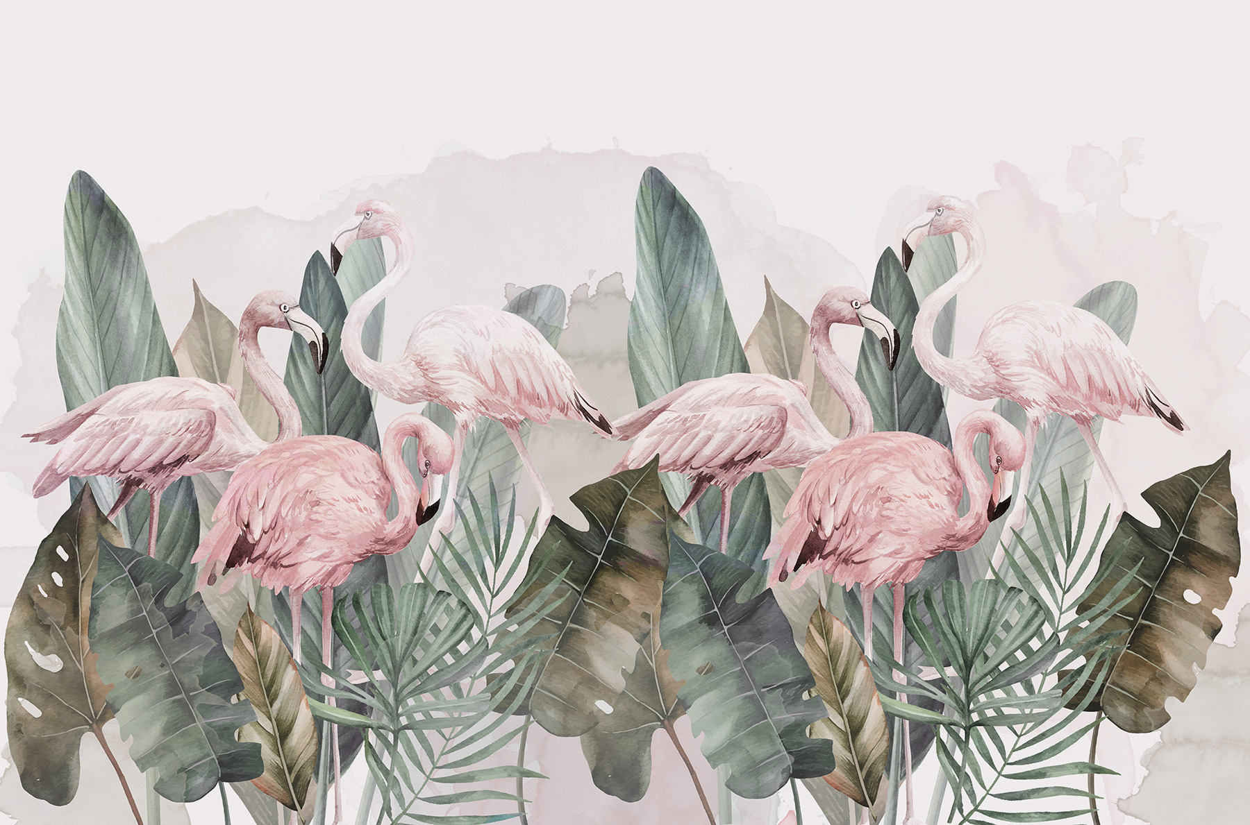 Brighten up any room with this charming wall mural featuring a delightful gathering of pink flamingos surrounded by lush greenery. Imagine stepping into your space and feeling like you’re on a tropical getaway—without the sunburn! The soft watercolors and gentle hues add an airy vibe, perfect for creating a cozy nook or a playful accent wall. Whether it’s in a living room, nursery, or even a chic café, this mural sparks joy and whimsy. It’s like having a mini-vacation on your wall, inviting smiles and maybe a spontaneous dance party. Who wouldn’t want that kind of vibe?