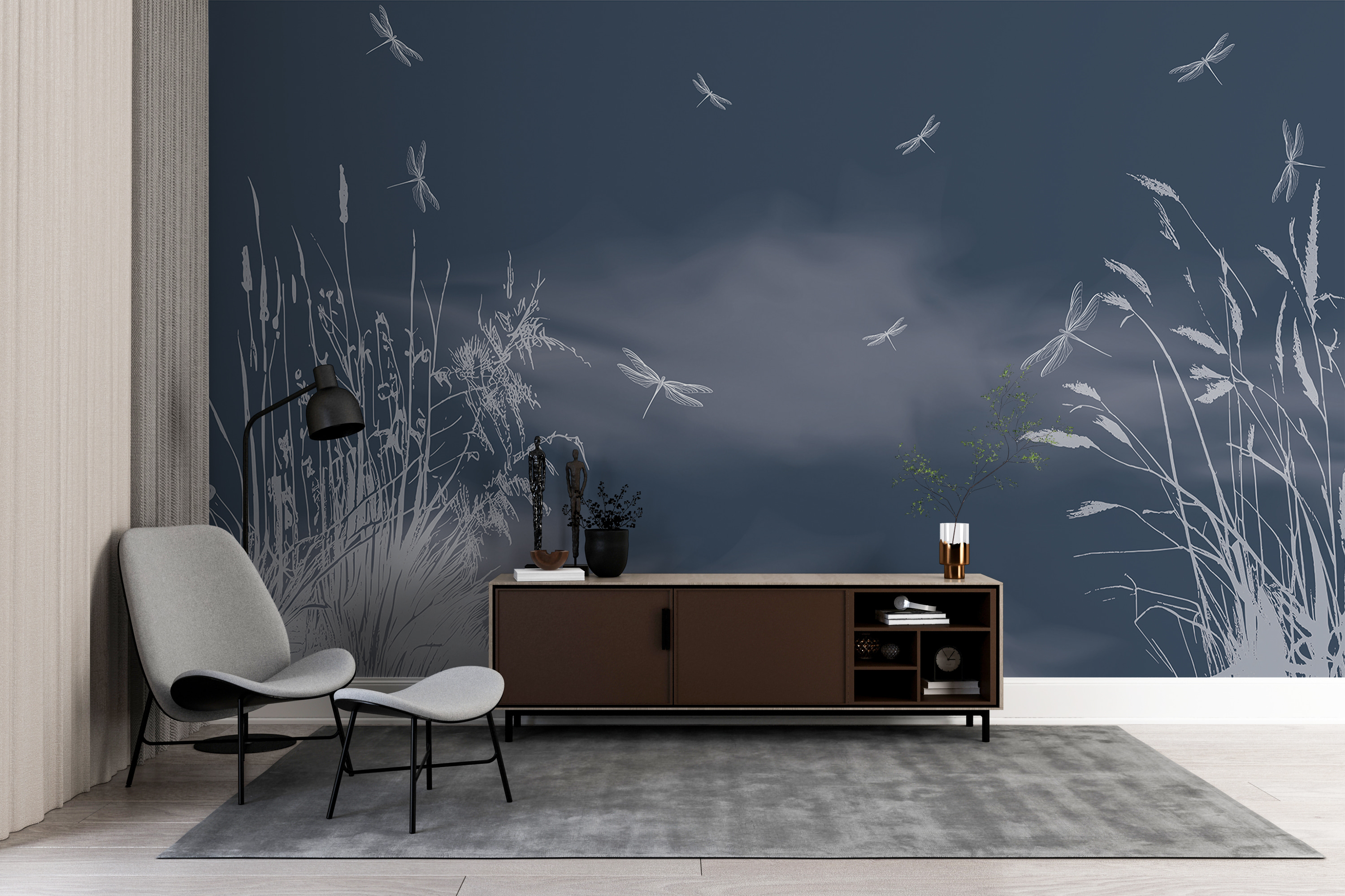 Transform any room into a serene escape with this enchanting wall mural featuring dragonflies dancing in a dreamy sky. Imagine standing in a cozy corner, tea in hand, watching these delicate creatures flutter above a softly swaying meadow. The gentle gray and white tones create a calming atmosphere that feels both refreshing and calm—perfect for those moments of daydreaming or even deep thoughts. It’s like having a slice of nature right at home, where each glance feels like a little getaway. Perfect for nature lovers or anyone craving a peaceful vibe.