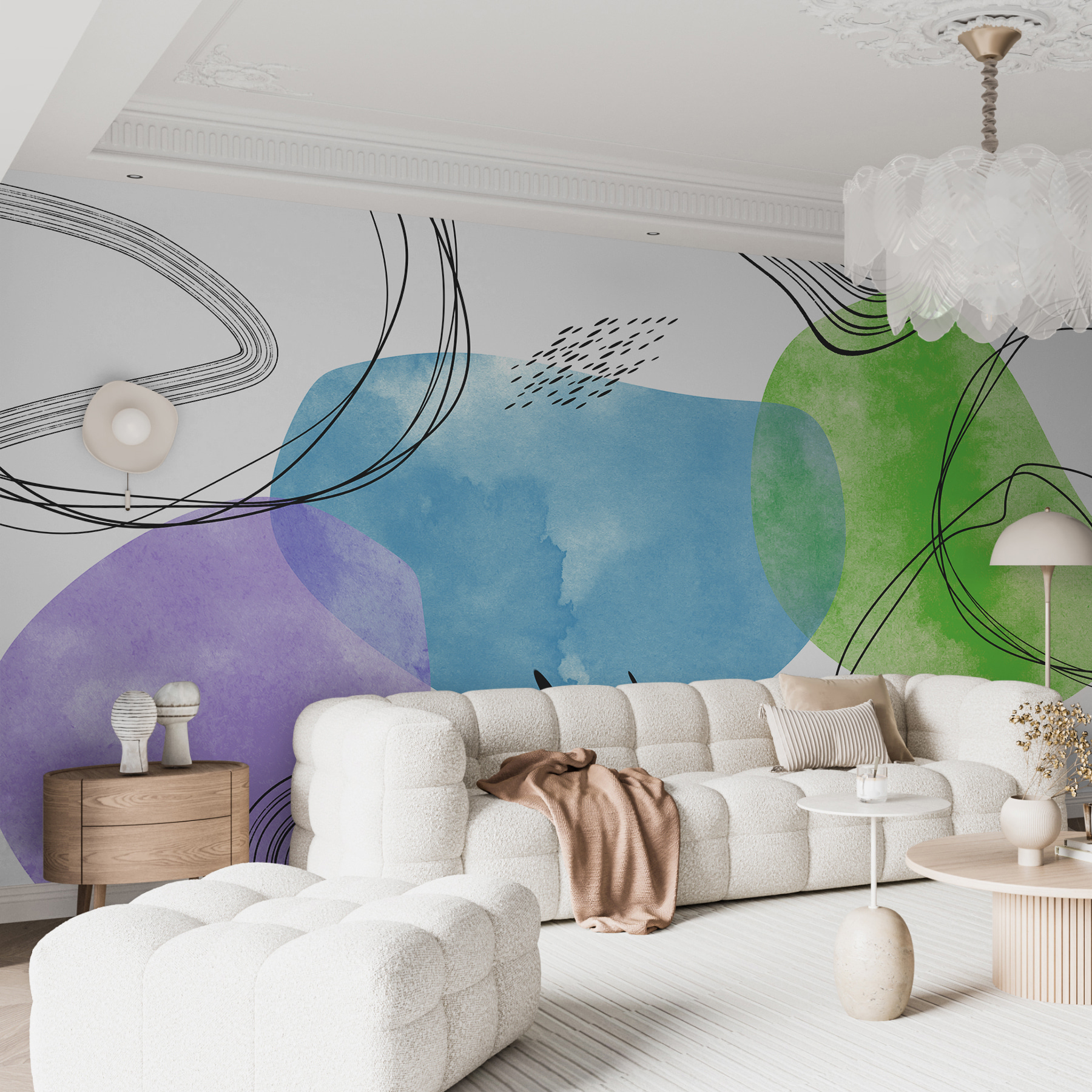 Dive into a splash of whimsy with this vibrant wall mural! Featuring playful greens and blues, it’s like a refreshing breeze through a garden. Perfect for brightening up a living room or adding a unique touch to a cozy nook, this design transforms any space into a mini oasis. Just imagine sipping your morning coffee while soaking up the calming colors—serenity in every sip, right? Plus, those bold lines give it that funky edge, making it a conversation starter. Let the charm of nature mingle with your décor, and watch your walls come alive!