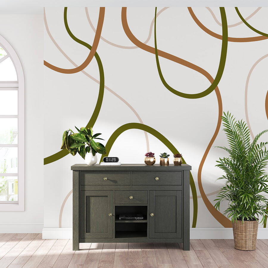 Transform your space with this stunning wall mural featuring playful brown and green lines dancing across a crisp white background. It brings a fresh, organic vibe that feels like a walk in the woods—minus the bugs, of course. Imagine sipping coffee in a cozy corner, with this mural adding warmth and character to your room. It’s a conversation starter, perfect for entertaining guests or just daydreaming on a lazy afternoon. Plus, it effortlessly brightens up any space, making it feel inviting and full of life. Who wouldn’t want to wrap their walls in creative energy?