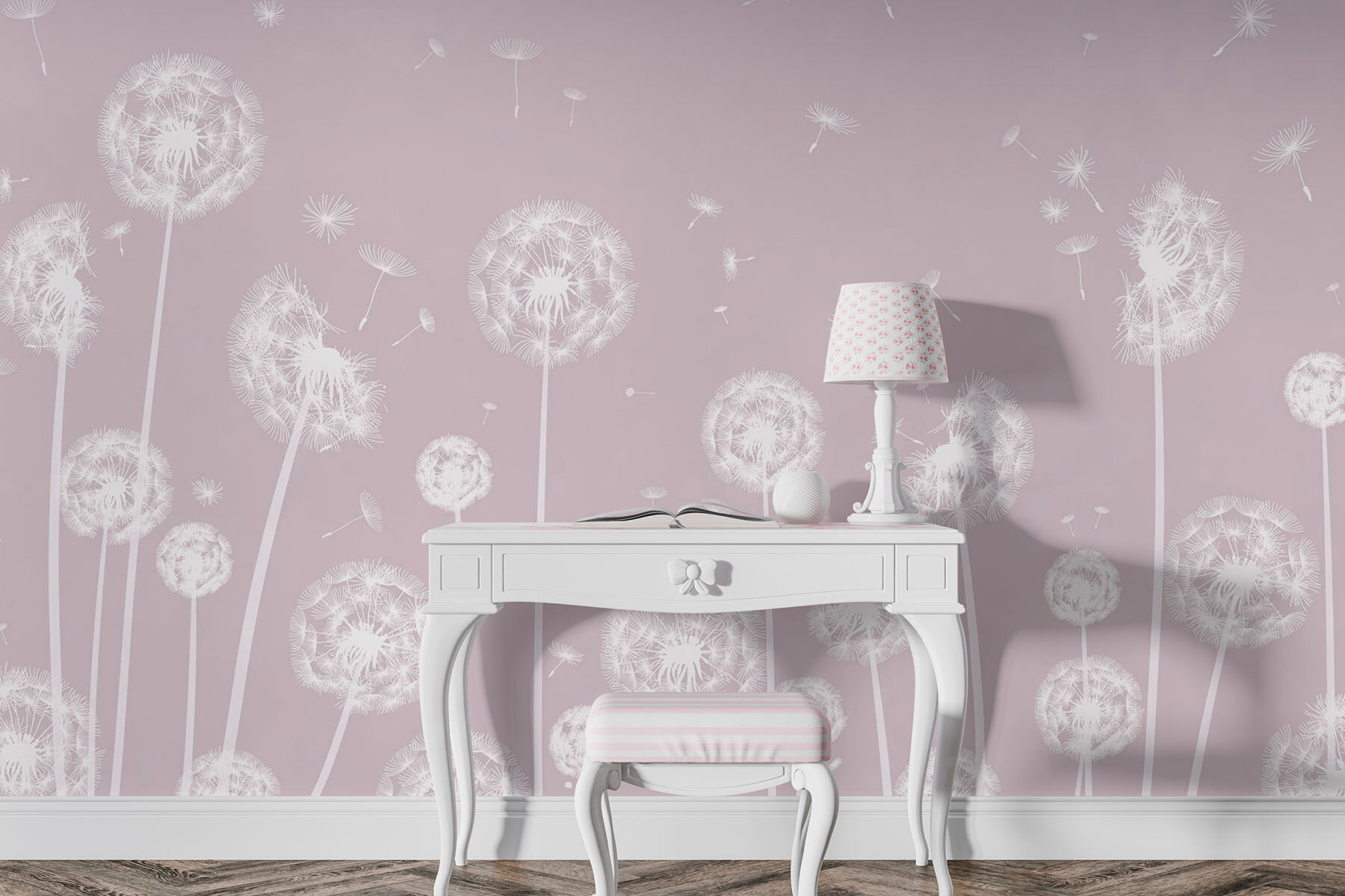 Transform any room into a serene escape with the “Dandelions Drifting in the Breeze” mural. Picture this: soft whispers of white dandelions swaying gently against a calming pink backdrop, capturing that perfect moment of stillness. It’s like bringing a breath of fresh air indoors, evoking memories of carefree days spent tossing dandelion seeds into a warm breeze. Just imagine plopping down with a cup of tea, feeling the lightness of the room. It’s a playful nod to nature, perfect for anyone looking to add a touch of whimsy and tranquility to their space. Who wouldn’t smile seeing these cheerful blossoms floating by? Perfect for a cozy bedroom or a sunny nook, this mural definitely invites daydreams and good vibes.