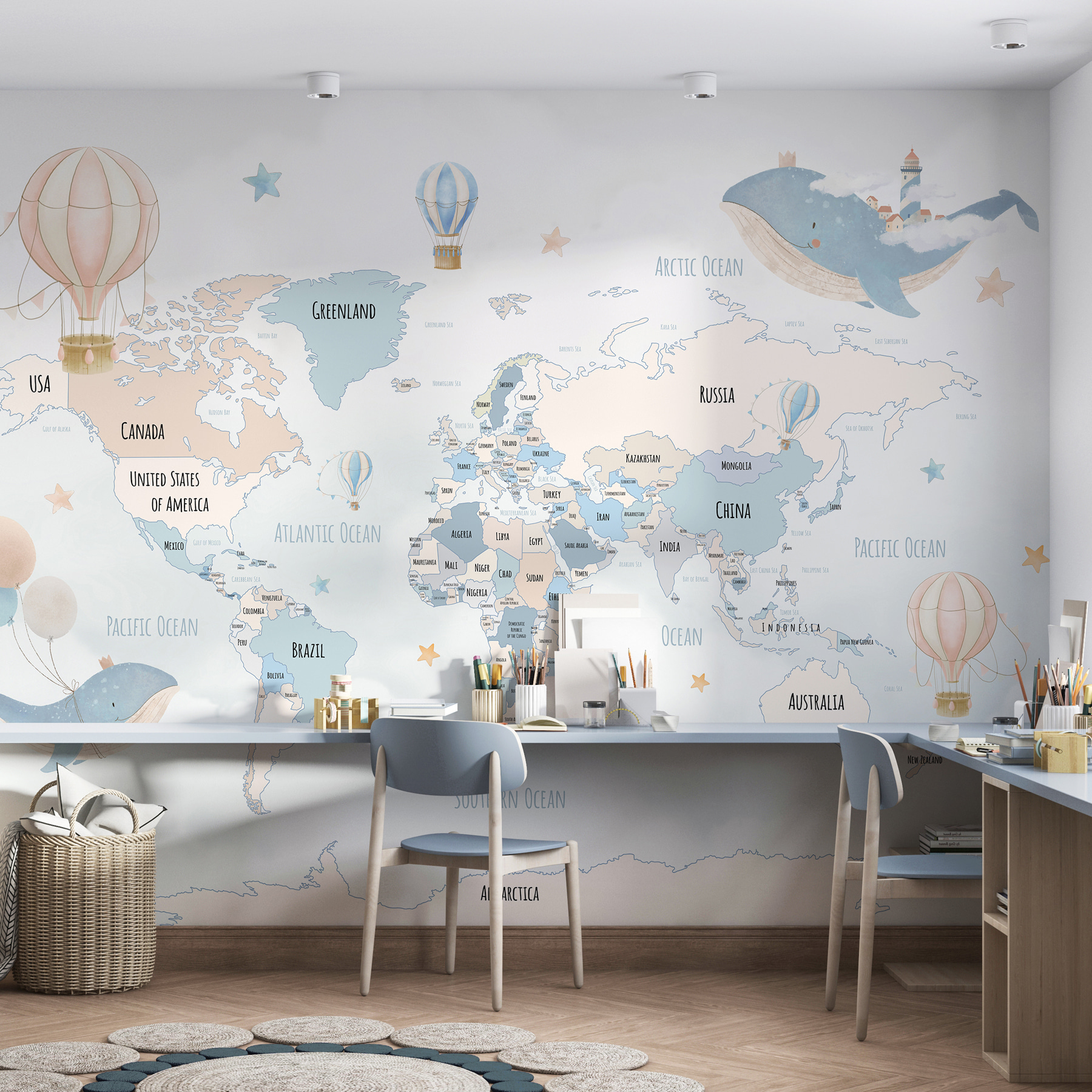 Transform any space with this delightful “Blue and White Hot Air Balloon” wall mural! Just imagine walking into a room that feels like a whimsical adventure. The soft colors and dreamy clouds invite daydreams about far-off places. Perfect for a nursery or a cozy reading nook, this mural just begs for a comfy chair and a warm cup of tea. Plus, who doesn’t love a whale floating by, right? It’s like a friendly reminder that adventure is just a thought away. Bring some lighthearted charm to your walls and watch as every visitor’s mood lifts. Seriously, it’s a heartwarming touch that adds character to any room!