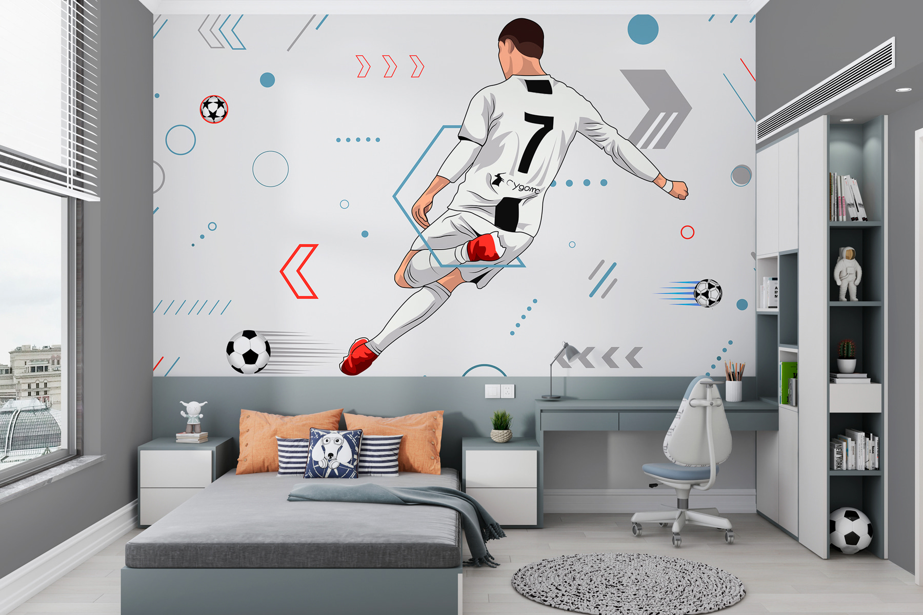Transform your space with this dynamic wall mural featuring a player kicking a soccer ball with all their might! It’s like having a mini stadium right in your living room—talk about a game-changer. The bold colors and energetic design jump out, bringing a splash of excitement to any wall. Imagine the kids racing to score imaginary goals or hosting epic game nights with friends. It’s not just decor; it’s a vibe that’ll make every day feel a little more adventurous. Perfect for sports fans or anyone looking to add a fun twist to their interior. Who knew walls could kick it up a notch?