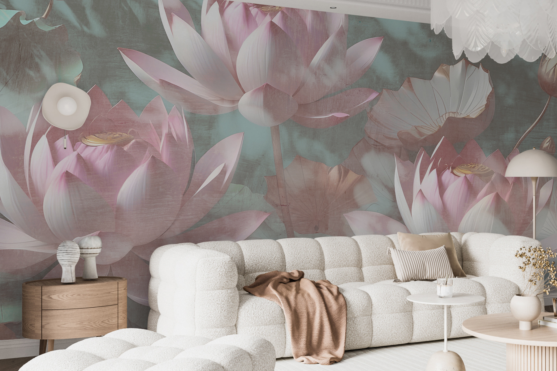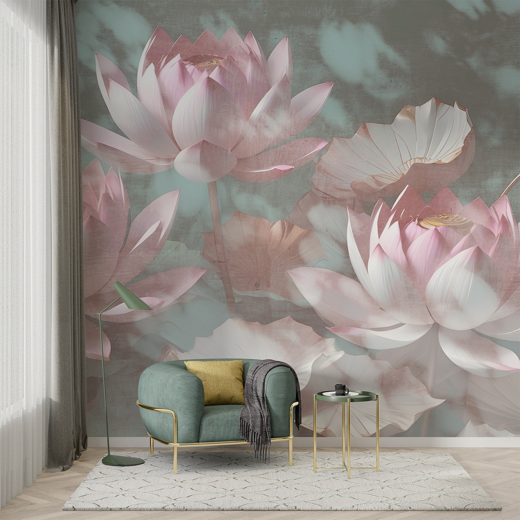Transform your space into a serene oasis with this enchanting mural, “Pastel Lotus Blooms Amidst Leaves.” Imagine stepping into a tranquil retreat, where soft pinks and gentle greens wrap around you like a warm hug. Each lotus bloom seems to sway softly, inviting you to pause and take a deep breath. It’s like having a secret garden right on your wall. Perfect for a cozy reading nook or that empty spot in the hallway, this mural sparks joy and calmness. And hey, it might even inspire some daydreaming—maybe a spontaneous trip to a peaceful lake or a quiet moment with a cup of tea.