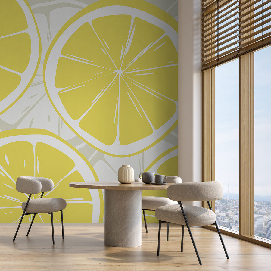 Brighten up any room with this zesty wall mural featuring sliced lemons in a vibrant pattern. It’s like a sunny day splashed across your wall, bringing a splash of freshness that just feels good, you know? Imagine sipping lemonade on a warm afternoon, and that’s the vibe this design gives off. Perfect for kitchens, dining rooms, or even a cheerful workspace—you can almost hear the refreshing crunch of lemon-lime goodness. This mural doesn’t just decorate; it creates a whole mood, transforming spaces into welcoming havens with a fruity twist. Who knew a simple fruit could add such personality?