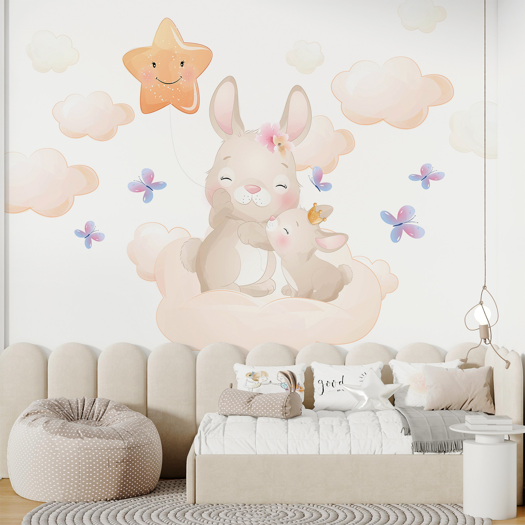 Transform a dull wall into a whimsical dreamscape with the “Wall Murals Cartoon of a Star.” This playful design features adorable bunnies floating on fluffy clouds, cuddling up beneath a cheerful star. It’s the kind of mural that makes you want to zone out, sipping a cup of cocoa while daydreaming. Just picture a little one squealing with delight, pointing at the butterflies flitting nearby. This mural radiates warmth and joy, perfect for a nursery or kid’s room. Who wouldn’t want to wake up to such a happy scene? Add a sprinkle of magic to your space—it’s like a hug for your walls!