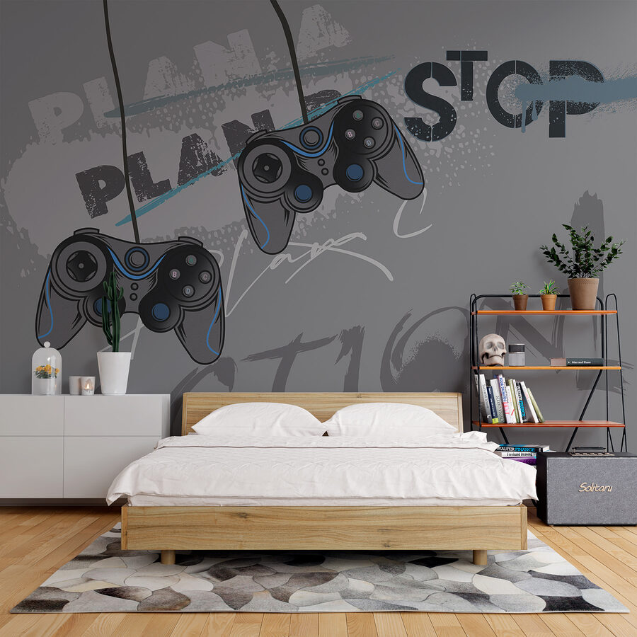 Transform any room with this quirky wall mural featuring a bold video game controller design on a cool grey backdrop. It’s a vibrant nod to the gaming world that hints at late-night marathons and friendly competitions. Imagine a space where every glance at the mural sparks a little nostalgia—like the thrill of beating a tough level or the laughter from a gaming night with friends. It’s not just decor; it’s a conversation starter, a playful splash of personality that’ll have everyone reminiscing about their favorite gaming moments. Perfect for a young woman’s retreat or a son’s gaming corner, this mural invites action and creativity. Plus, who wouldn’t love a gentle reminder to hit ‘play’ every now and then?