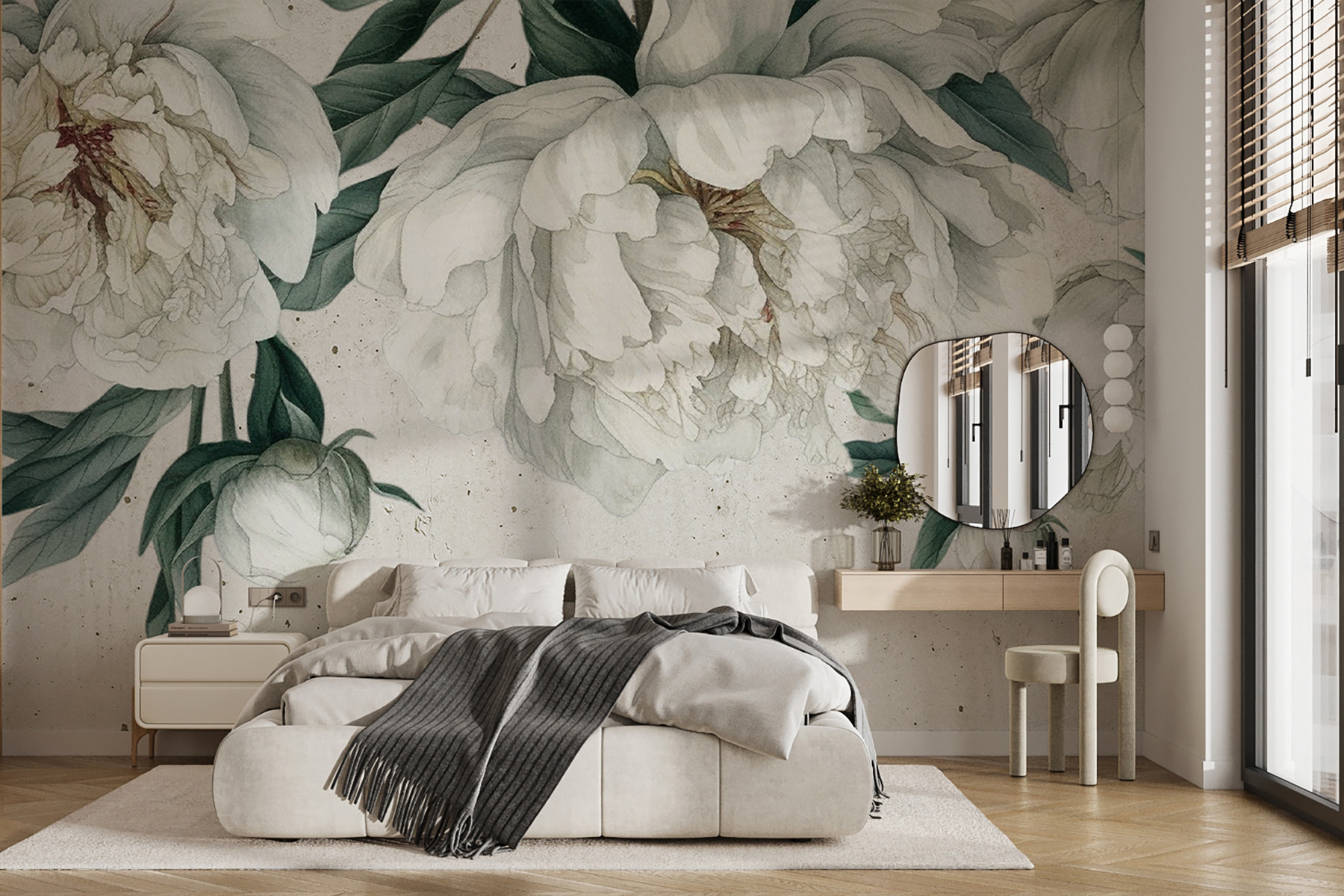 Transform any room into a serene escape with “Wall Murals White Peonies with Lush Green Leaves.” Imagine waking up to soft, lush peonies splashed across your wall, bringing that garden vibe right indoors. The gentle greens and whites effortlessly brighten up any space, making it feel fresh and inviting. Friends will stroll in and feel like they’ve stepped into a tranquil retreat—a moment of calm in their busy day. The subtle beauty here isn’t just decor; it’s an experience, whispering of nature and the quiet joys of life. A perfect backdrop for cozy chats or simply daydreaming, this mural invites smiles every time it catches the eye.