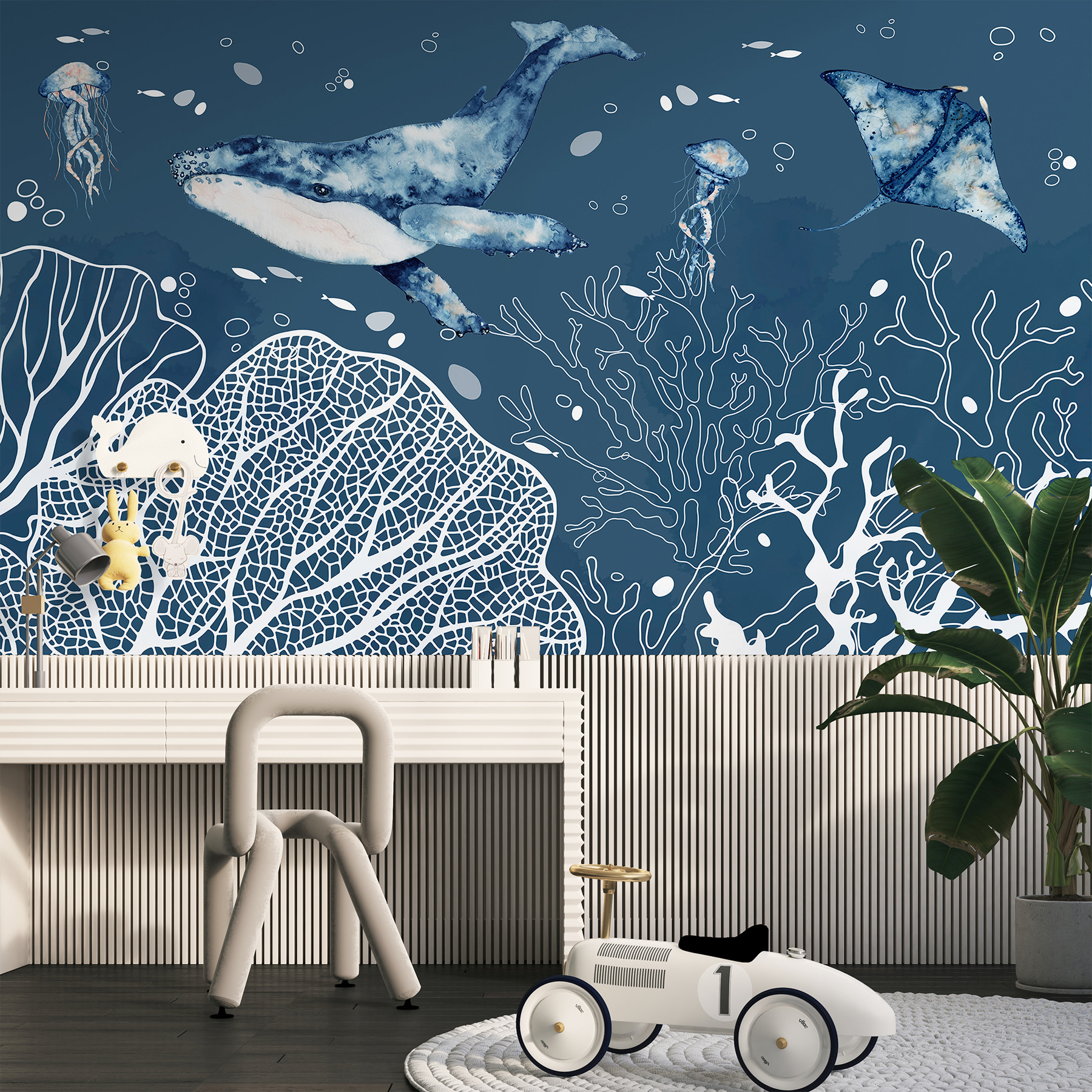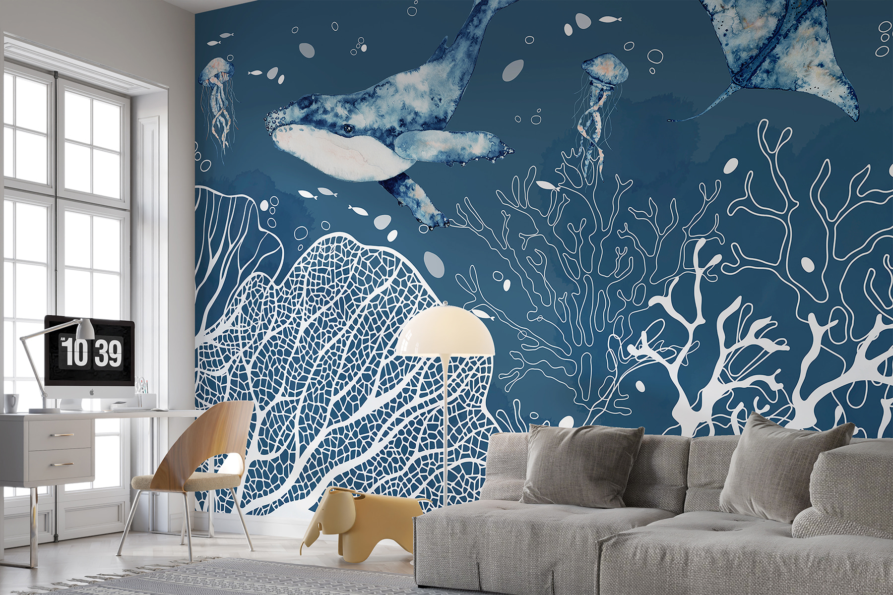 Dive into a splash of color and creativity with the “Underwater Wonders of the Deep Sea” mural! Imagine transforming your space into a serene ocean escape, where graceful whales and whimsical jellyfish swim alongside intricate coral designs. This mural doesn’t just decorate; it breathes life into your walls, inviting a sense of calm and wonder. Picture lounging in your favorite chair, the blues and whites washing over you like gentle waves—pure bliss! Ideal for nature lovers or anyone ready to add a touch of the ocean to their everyday hustle. Who knew the deep sea could feel so cozy?