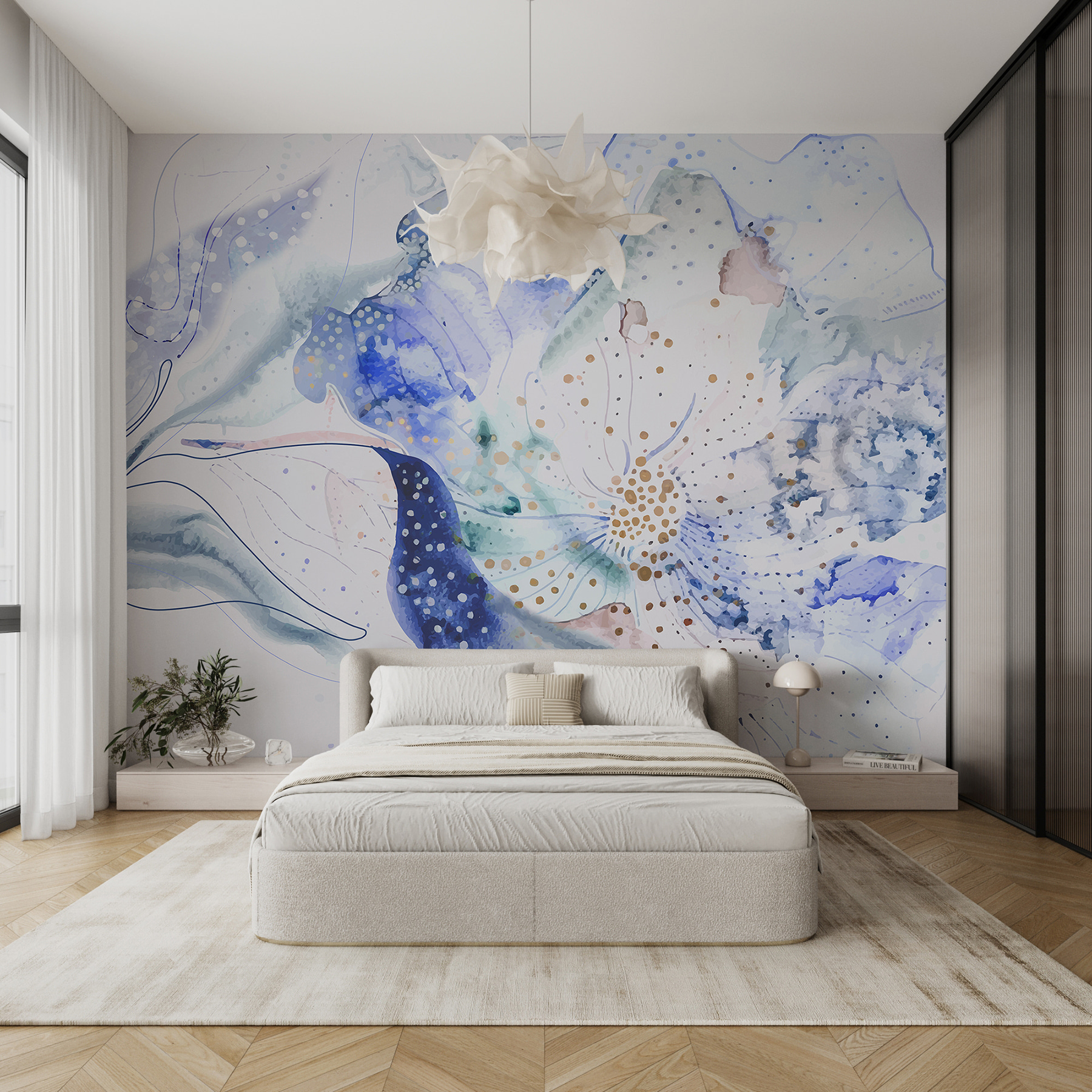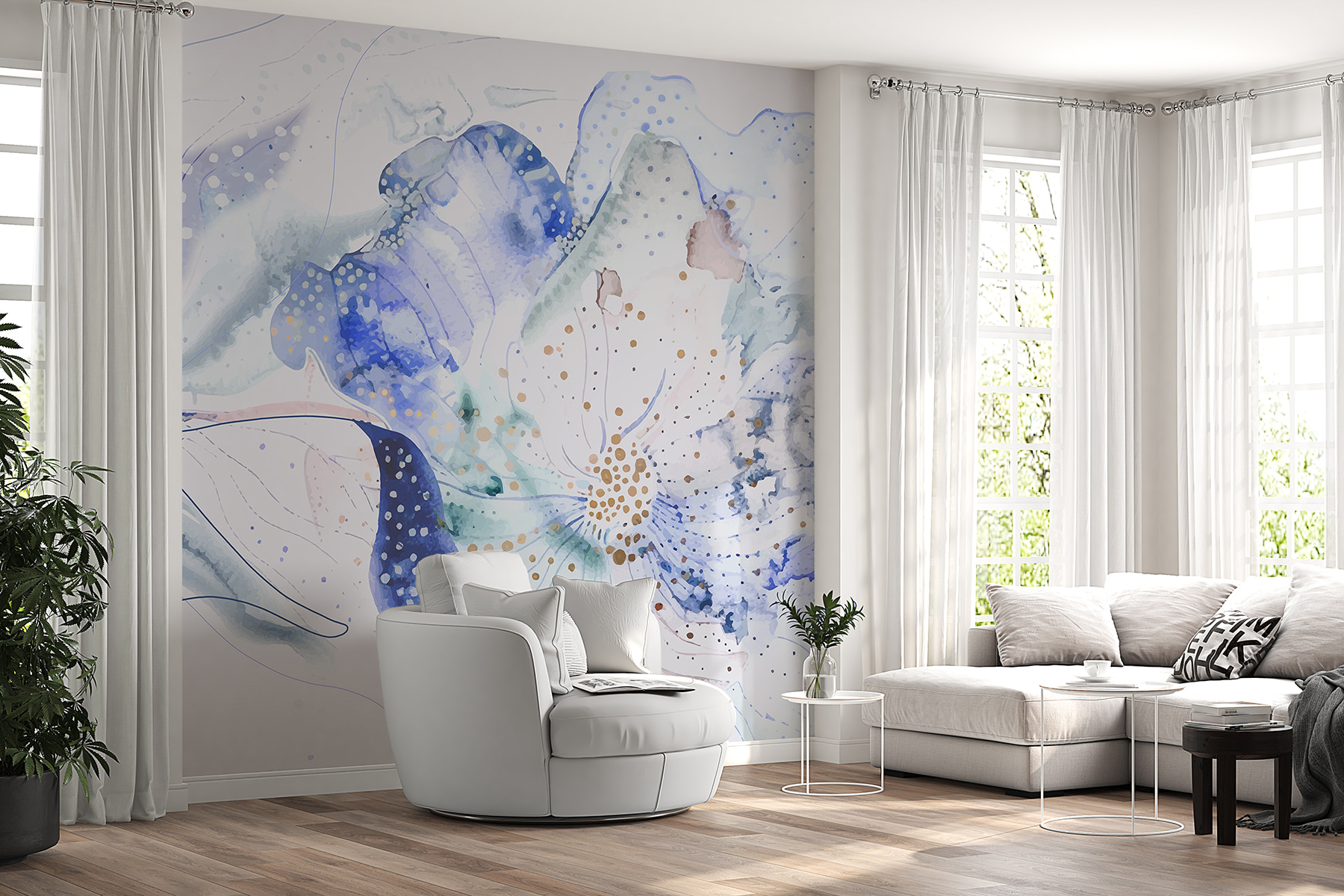 Looking to transform a space into a dreamy oasis? This delicate watercolor mural, featuring blossoms in soothing blue tones, might just be the perfect touch. Imagine walking into your room and feeling like you’re stepping into a serene garden. The gentle swirls of color almost beckon a soft breeze, making you want to take a deep breath and relax. It’s like a little escape without leaving home. Plus, whether it’s in a cozy nook or a bold feature wall, this mural brings a refreshing vibe. Perfect for daydreaming or just enjoying a cup of tea. Who knew decor could feel like a hug?