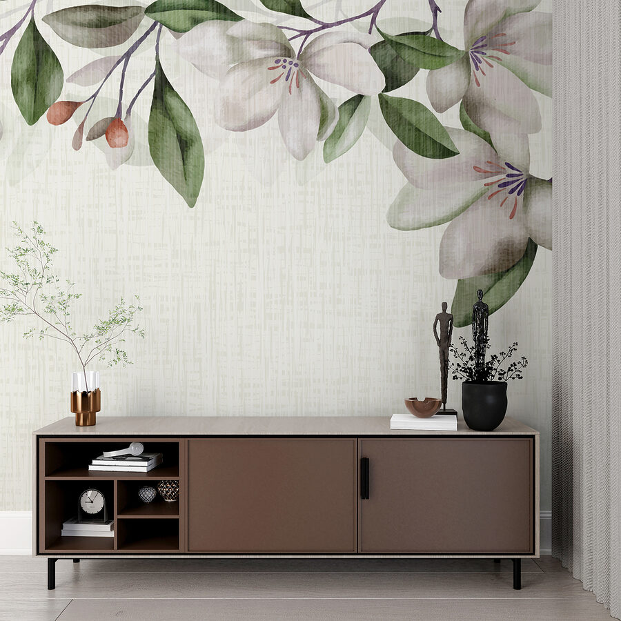 Transform any room into a tranquil retreat with this charming floral mural. Featuring soft, pastel blooms and delicate greenery, it’s like having a garden that never wilts—perfect for those who can’t keep a plant alive (no judgment here!). Imagine waking up to this beautiful sight, sipping your morning coffee, and feeling like you’ve stepped into a serene spring day. The subtle texture in the background adds depth, making it a cozy backdrop for your adventures. It’s not just decor; it’s a breath of fresh air that invites warmth and joy into any space. Go on, let your walls bloom!