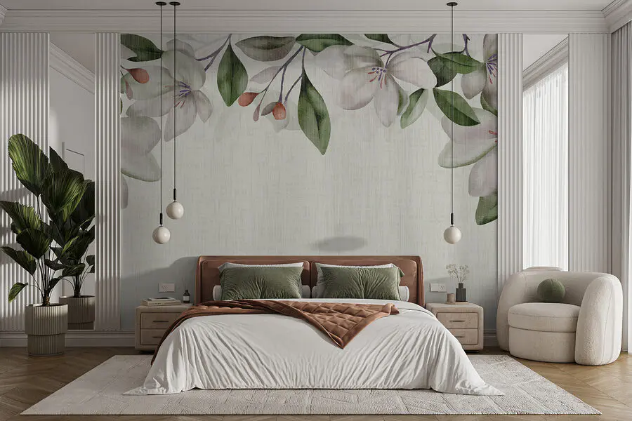 Transform any room into a tranquil retreat with this charming floral mural. Featuring soft, pastel blooms and delicate greenery, it’s like having a garden that never wilts—perfect for those who can’t keep a plant alive (no judgment here!). Imagine waking up to this beautiful sight, sipping your morning coffee, and feeling like you’ve stepped into a serene spring day. The subtle texture in the background adds depth, making it a cozy backdrop for your adventures. It’s not just decor; it’s a breath of fresh air that invites warmth and joy into any space. Go on, let your walls bloom!