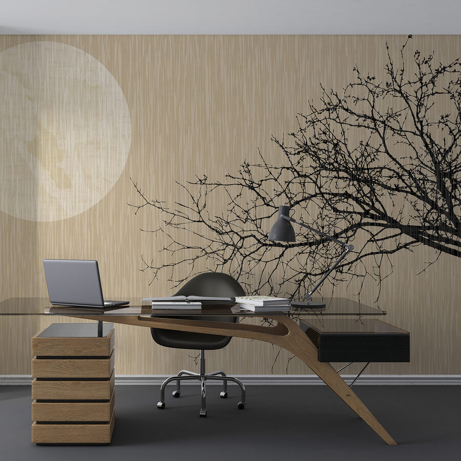 The gentle beige background warms up the look, while the muted moon reminds us of quiet, contemplative nights. It’s perfect for those who appreciate nature’s subtle moods. Picture curling up with a good book or chatting with friends, the mural adding that perfect touch of uniqueness. It’s art that sparks conversation, evokes emotion, and really makes a space feel like home. Who knew a tree could have so much to say?