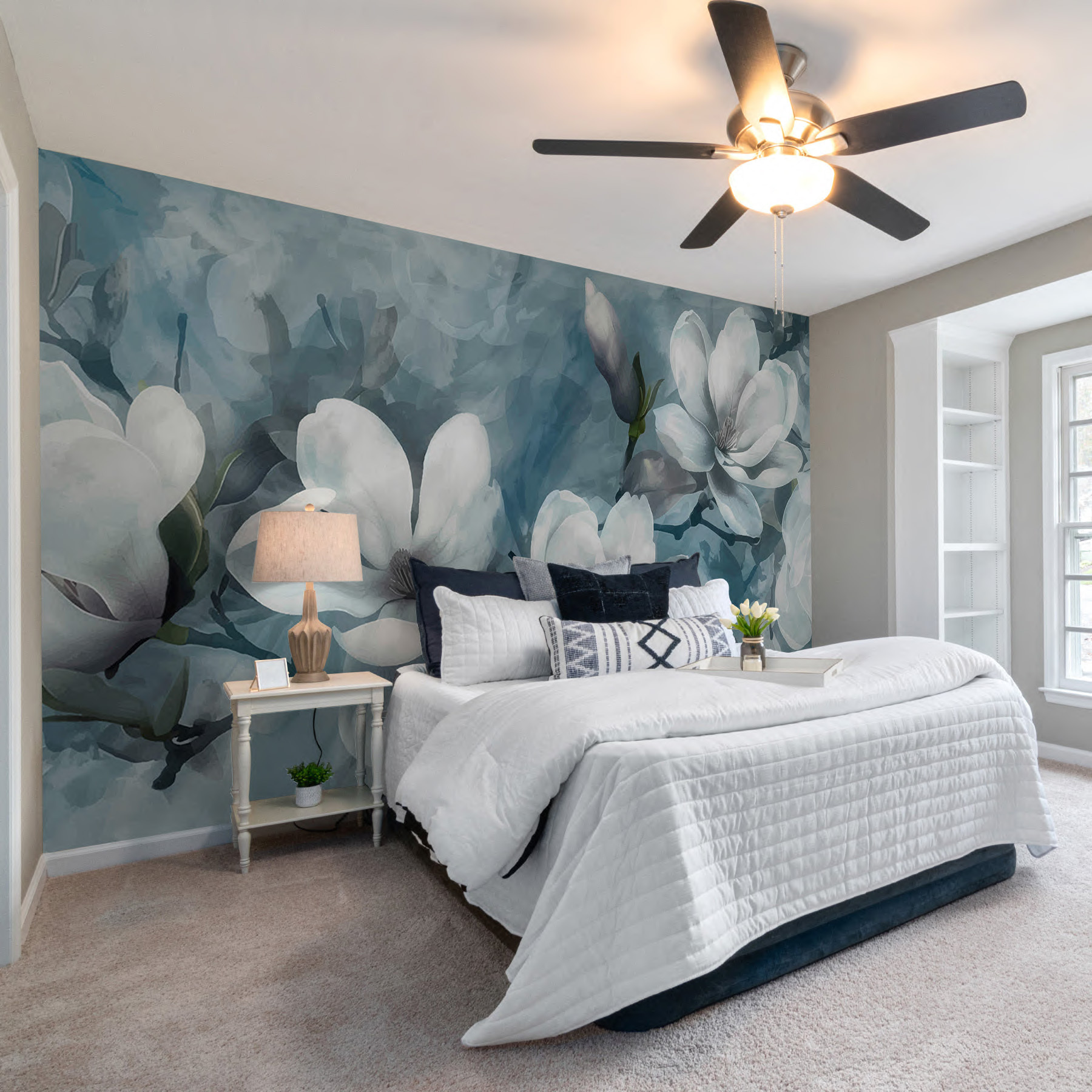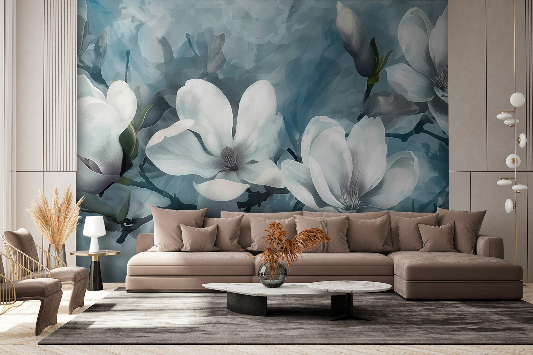 Transform a dull wall into a dreamy oasis with this stunning mural featuring a group of white flowers. It brings a breath of fresh air, like a gentle spring breeze wafting through your living space. Imagine sipping coffee, surrounded by these elegant blooms—it’s bound to spark some daydreaming. The soft tones blend so well, creating a serene backdrop that whispers, “relax.” Perfect for a cozy nook or as a statement piece in a larger room, it adds just the right touch of nature without the fuss. Plus, it’s a great conversation starter—everyone will want to know where it came from!