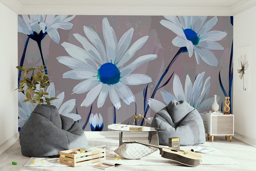Transform your space with this stunning mural featuring a delightful group of white flowers, each sporting a cheerful blue center. Imagine stepping into a room where these blooms dance across the wall, instantly brightening your day, even if the weather outside isn’t playing nice. Friends might just think a garden snuck inside, and who wouldn’t appreciate that? It’s a perfect backdrop for brunches or cozy evenings, sparking conversations and maybe even a few smiles. Embrace the beauty of nature without dealing with pesky pollen—a win-win for sure!