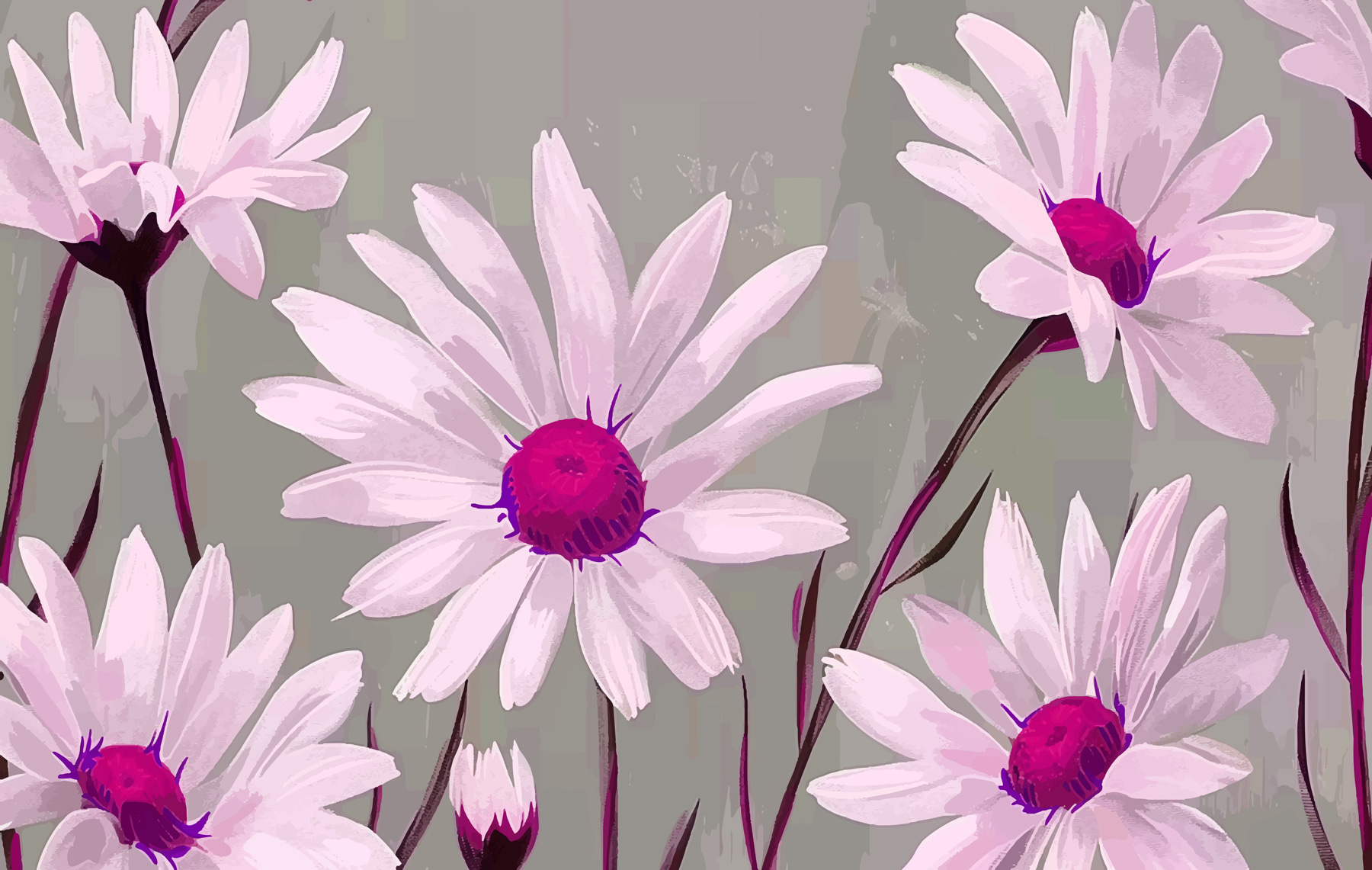Transform any space into a dreamy garden with this mural featuring a delightful group of white flowers, each boasting a charming purple center. Just picture it—walking into a room and being greeted by a burst of cheer every time. The soft watercolors create a warm, inviting vibe that makes even gloomy days feel a bit brighter—almost like nature’s way of sending a cheerful text. Whether it’s in the living room or a cozy nook, this mural effortlessly becomes the focal point. It’s like having a breath of fresh air right on your walls, and who doesn’t need that? Imagine those moments sipping coffee, surrounded by this delightful floral charm, it just makes everything a bit sweeter.