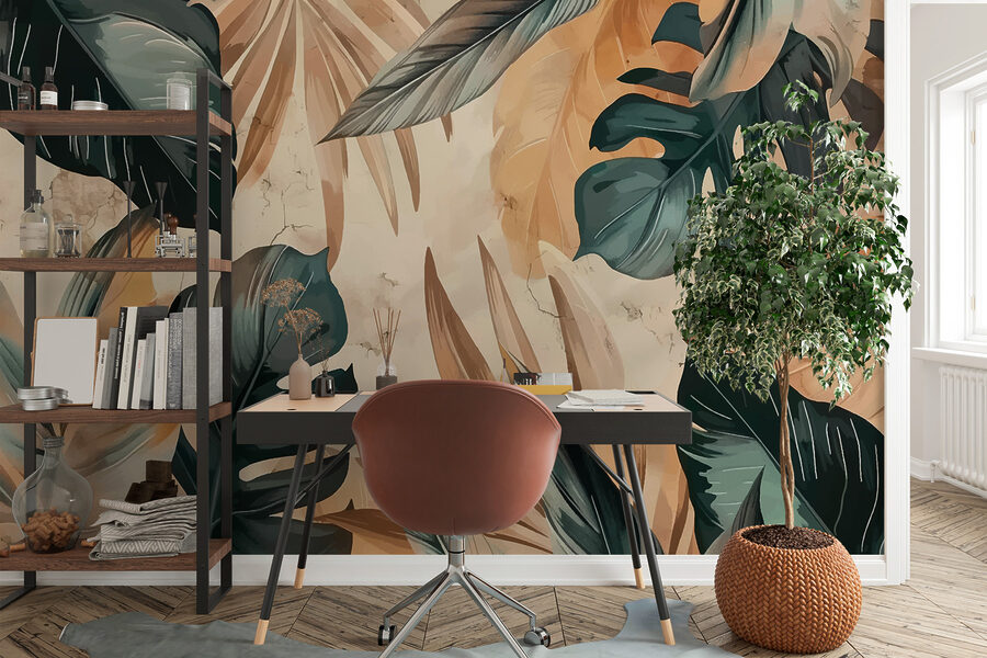 Transform any room into a tropical paradise with the “Tropical Leaves in Artistic Splendor” wall mural. Imagine stepping into a lush oasis right from your living room! This design features stunning leaves in rich greens and warm earthy tones, capturing the beauty of nature. It’s like a vacation for your walls—no sunscreen required! Picture sipping your morning coffee while surrounded by this vibrant scenery. The mural not only adds a splash of color, but it also sparks joy and a sense of wanderlust. It’s perfect for those who crave a touch of the outdoors, minus the bug spray!