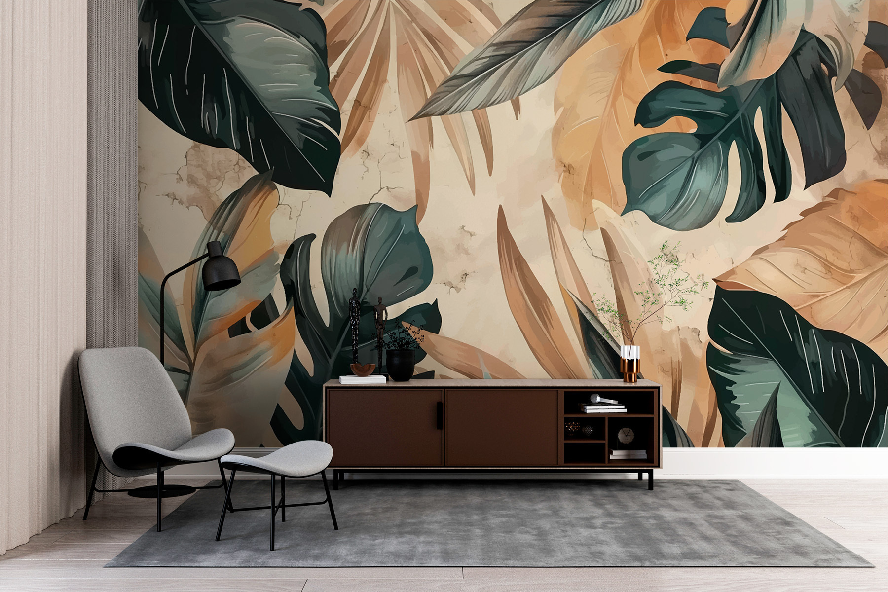 Transform any room into a tropical paradise with the “Tropical Leaves in Artistic Splendor” wall mural. Imagine stepping into a lush oasis right from your living room! This design features stunning leaves in rich greens and warm earthy tones, capturing the beauty of nature. It’s like a vacation for your walls—no sunscreen required! Picture sipping your morning coffee while surrounded by this vibrant scenery. The mural not only adds a splash of color, but it also sparks joy and a sense of wanderlust. It’s perfect for those who crave a touch of the outdoors, minus the bug spray!
