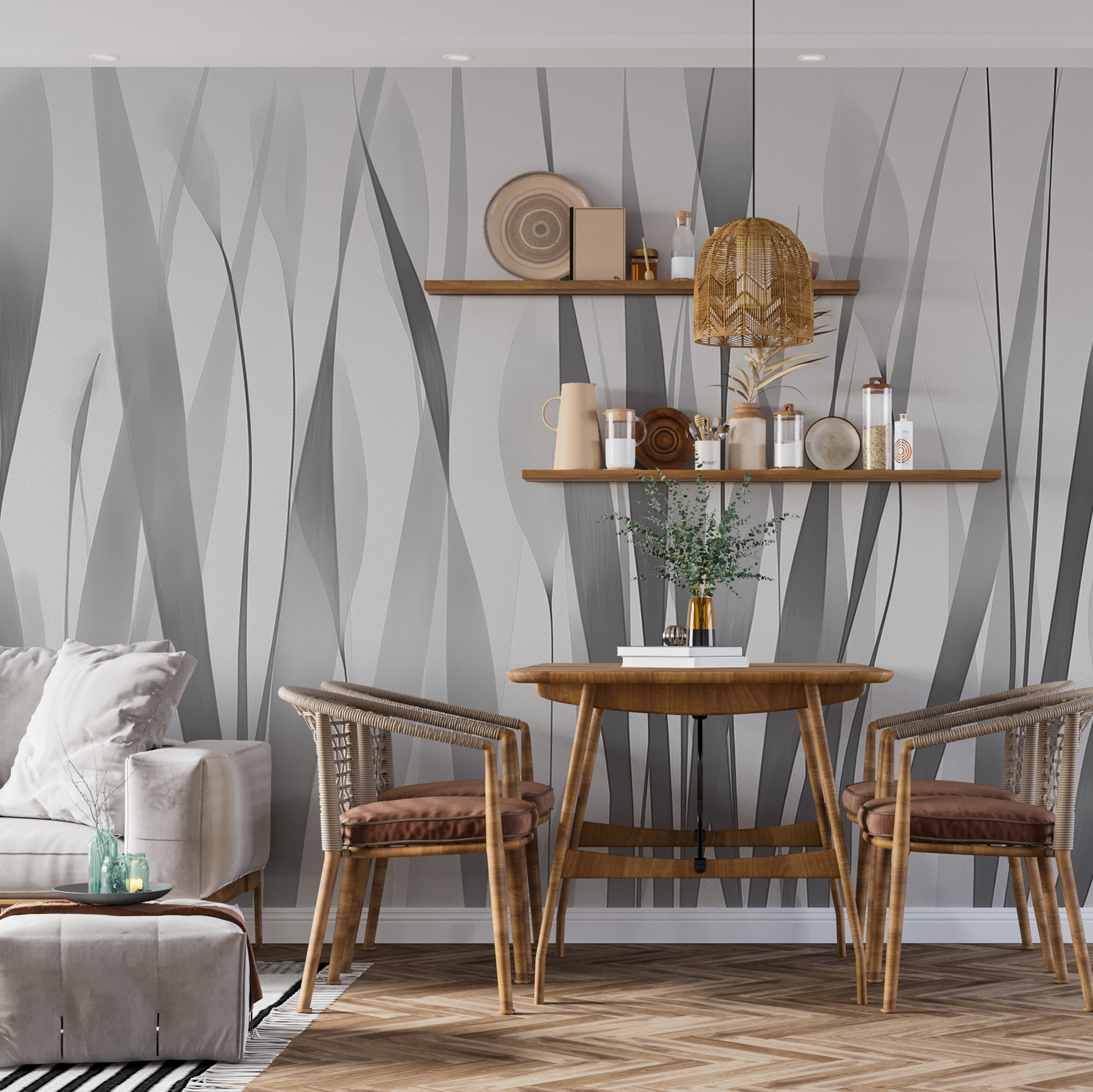 Transform a space into a serene haven with this striking grey and white wall mural depicting elegant plant silhouettes. It’s like bringing a breath of fresh air indoors—without worrying about maintenance or plant care. Picture lazy afternoons spent lounging by the wall, letting those gentle forms inspire your daydreaming. Perfect for living rooms or cozy reading nooks, it adds a chic touch while remaining effortlessly stylish. It’s kind of like wearing a classic black outfit but with a hint of nature’s grace. Get ready for compliments to roll in, as friends wonder where they can get one too!