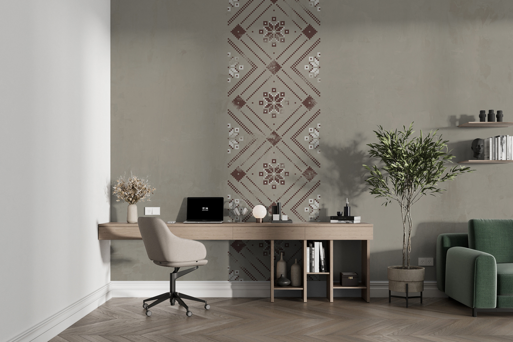 See exactly how your space will look with new wallpaper before purchasing. Professional visualization by expert designers with absolutely no cost or obligation to buy.