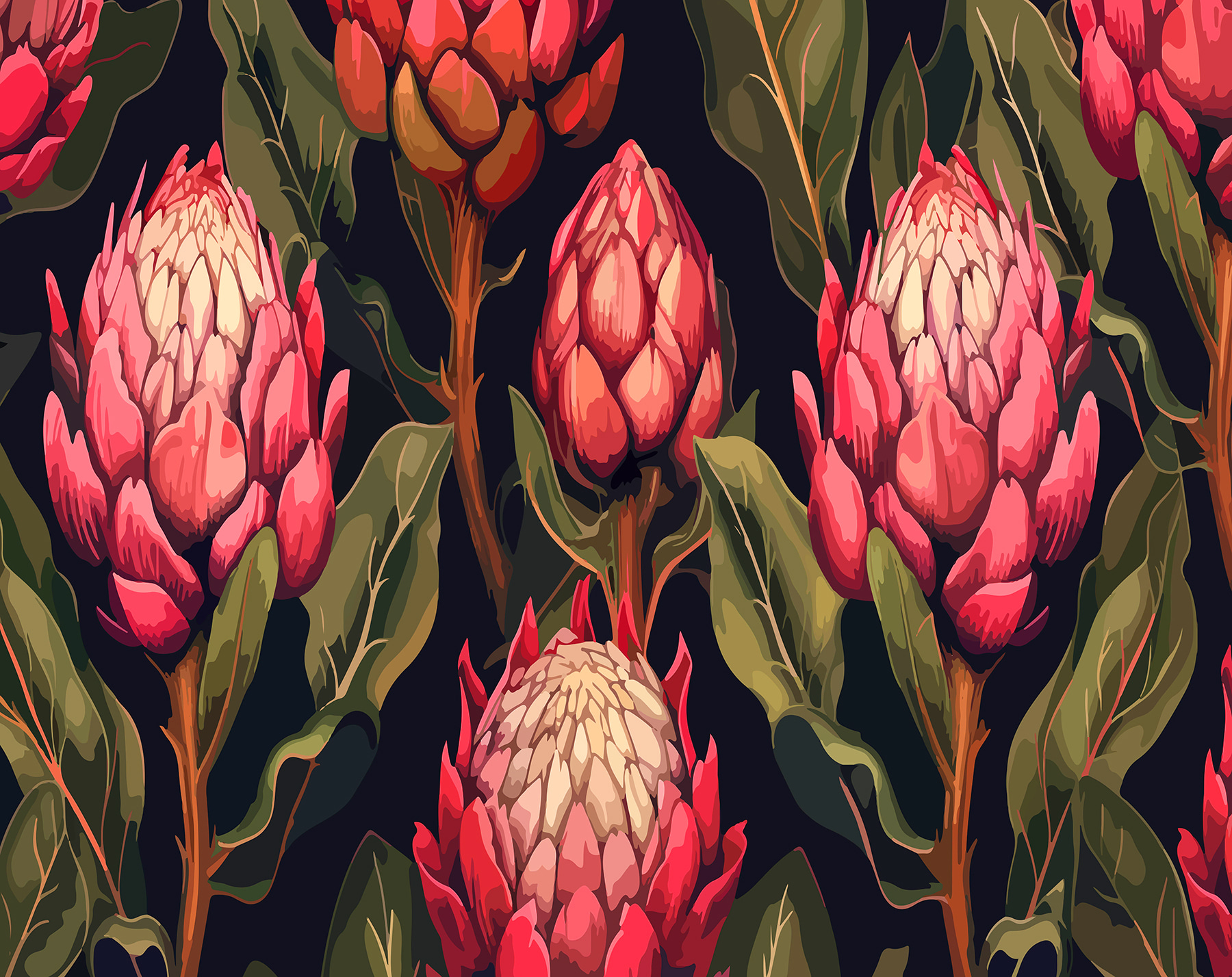 Wall murals Blooming Proteas in Vibrant Hues (SKU: w01065)