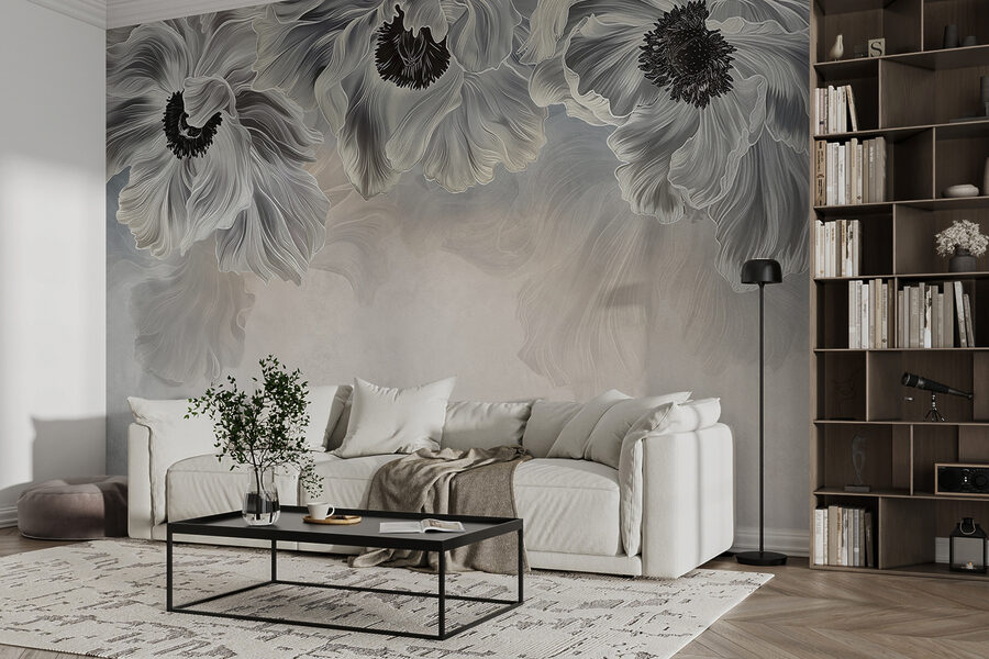 Wall murals Ethereal Floral Grayscape Wall murals Ethereal Floral Grayscape