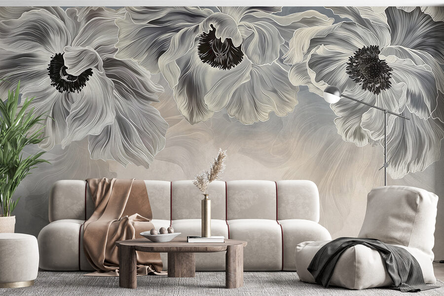 Wall murals Ethereal Floral Grayscape (SKU: w01093)