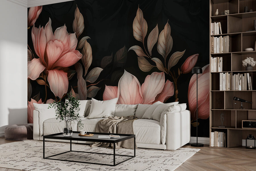 Transform any wall into a blooming paradise with the “Elegant Blooms in Stark Contrast” mural. Picture this: stunning, oversized flowers bursting forth against a deep backdrop—like a secret garden hidden in your home. It’s impossible not to feel a little uplifted every time you catch a glimpse! The striking contrast makes it perfect for adding a touch of drama, whether it’s in a cozy corner or as a statement piece in a grand room. Friends will rave about it, and who knows, you might even feel compelled to host tea parties just for the ambiance. It’s floral fun that brightens up your space and sparks joy—because who couldn’t use a splash of color and a hint of blossom in their life?