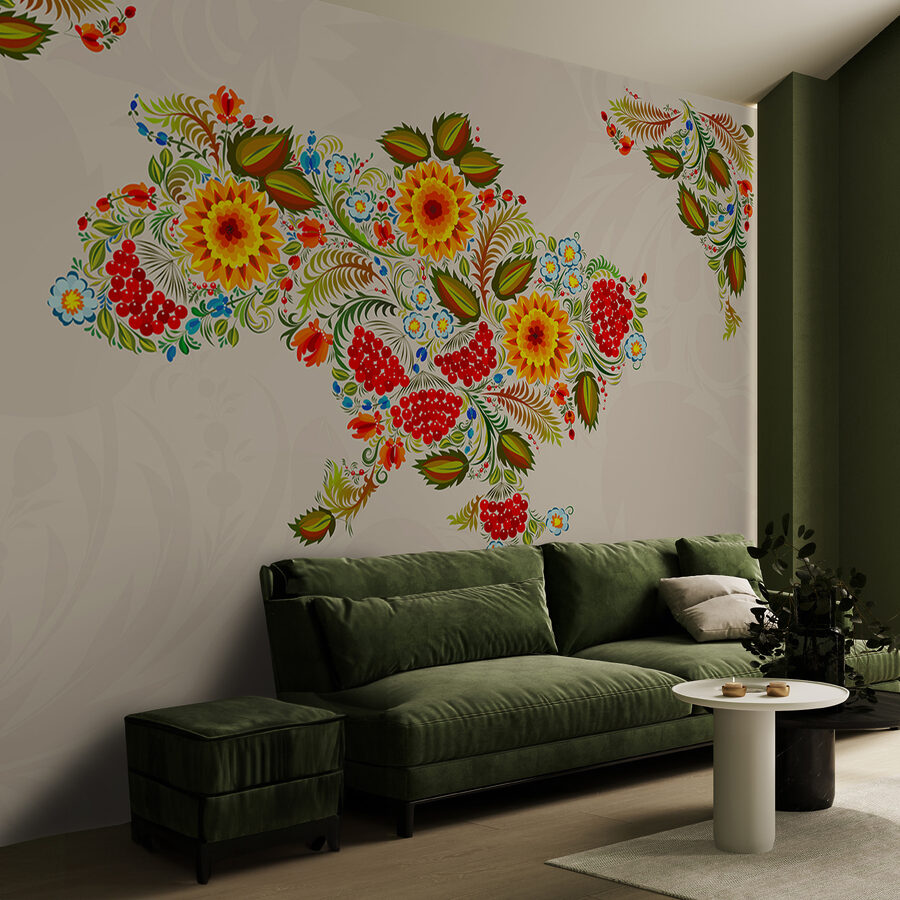 Transform your space into a vibrant celebration of nature with this stunning wall mural, “Map of Ukraine with Flowers.” Picture it: the bright sunflowers and colorful blooms that practically dance across your wall, telling a story of beauty and resilience. It’s like bringing a garden indoors—no watering required! Imagine cozy mornings sipping coffee while gazing at this masterpiece, or hosting friends who can’t help but marvel at the cheerful patterns. It’s a gentle reminder of the beauty in diversity, perfect for brightening up any room. Hang it and let the flowers do the talking—this mural speaks the language of joy!