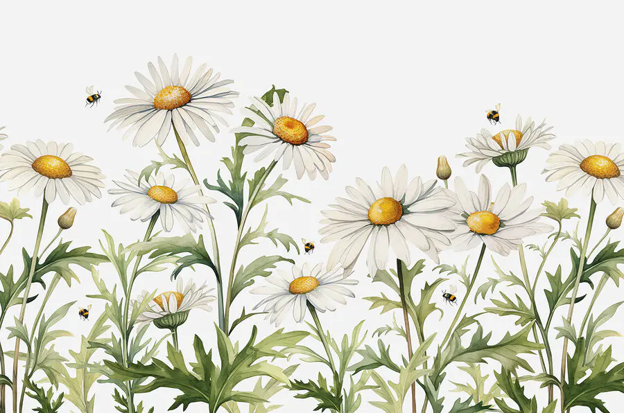 Transform your space with this charming wall mural, where daisies dance and bees buzz about. It’s like bringing a sunny meadow indoors—perfect for those days when stepping outside feels like a chore. Imagine sipping coffee while butterflies flit around in your mind. The fresh and lively vibe this mural offers can brighten any room and spark joy, making it ideal for a cozy living room or a bright entryway. You might even catch yourself smiling at the little bee that seems to be buzzing just nearby. It’s a touch of nature right on your wall!