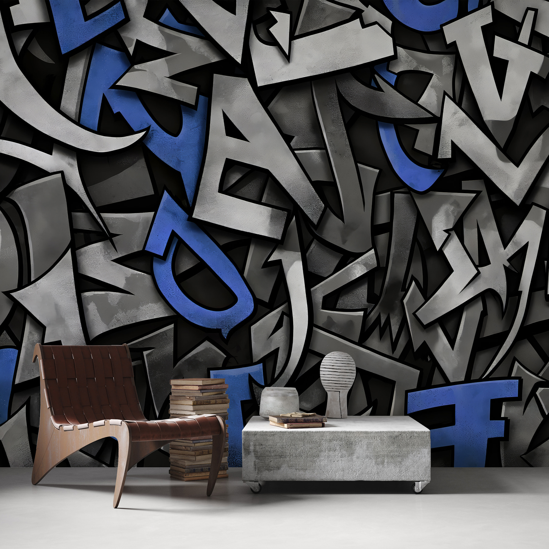 Transform your space with this striking wall mural, “Blue and Black Letter F.” It’s like a graffiti party exploded on your wall—bold letters and enchanting blues that add a splash of urban charm and artistic flair. Imagine walking into a room and being greeted by this vibrant display—it’s a conversation starter for sure! The overlapping textures create depth, making it feel alive. Perfect for a home office or a creative nook, this mural encourages inspiration and creativity. It’s like having artwork that whispers “be bold” every day!