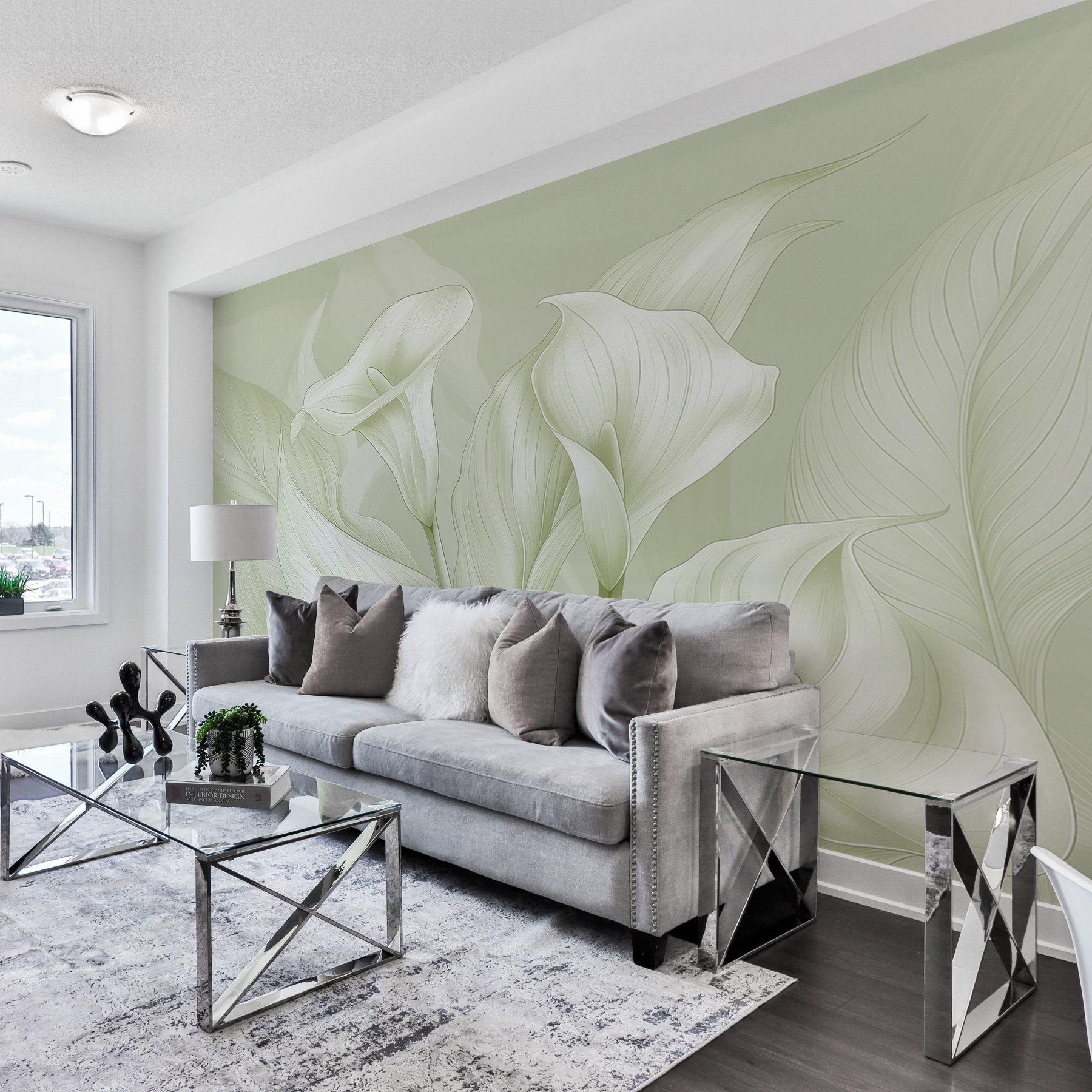 Transform your space with the “Elegant Calla Lilies” wall mural, where soft hues bring a gentle touch of nature indoors. Imagine waking up to this serene floral masterpiece—it’s like having a garden right in your living room! The subtle greens and whites create a calming vibe, perfect for those cozy mornings sipping coffee or unwinding after a long day. And let’s be honest, who wouldn’t want a backdrop that whispers relaxation? This mural doesn’t just decorate; it invites tranquility into your life, making every glance a little moment of bliss.