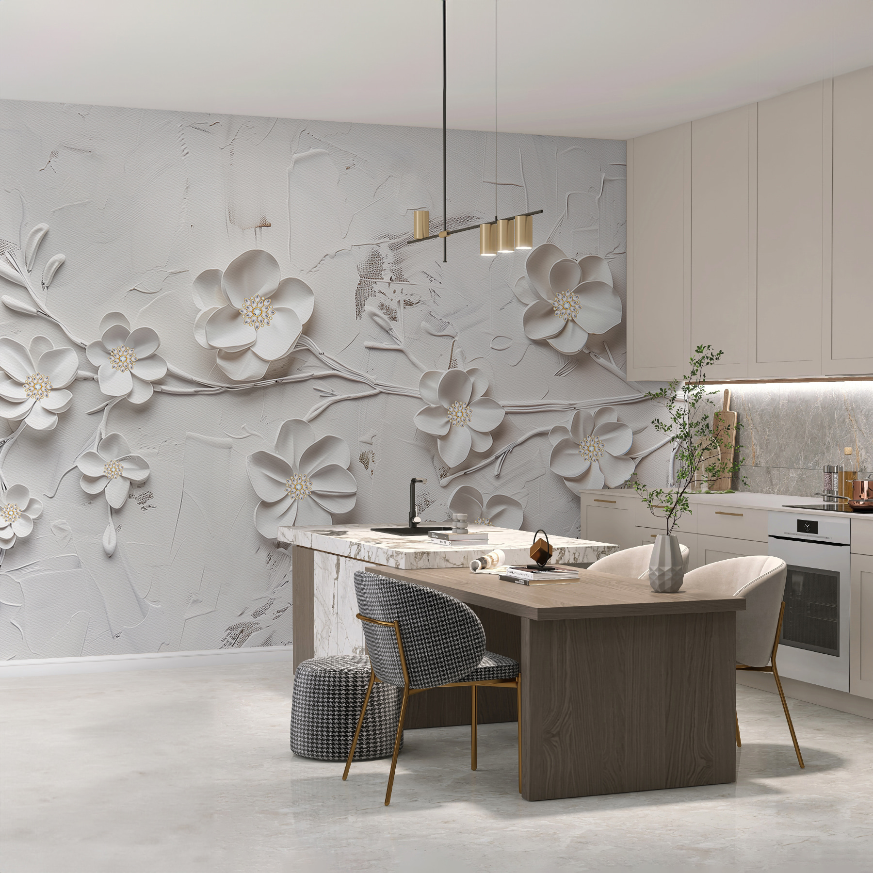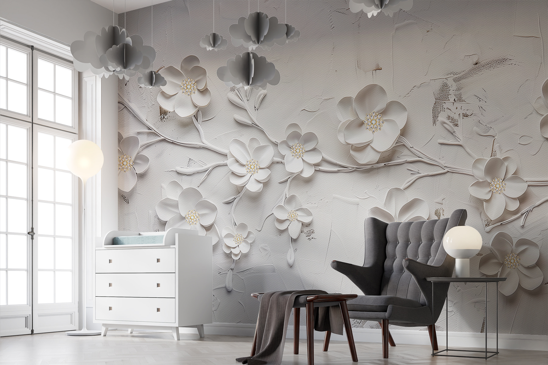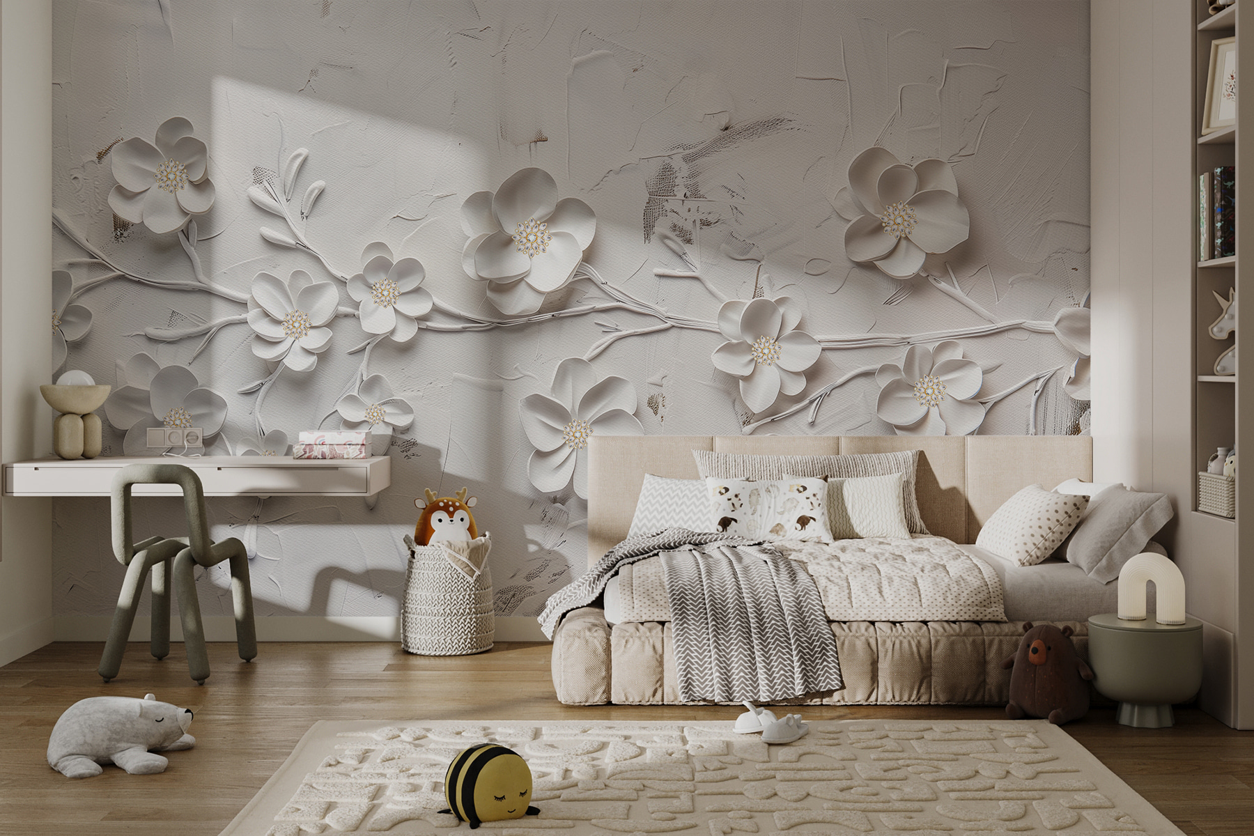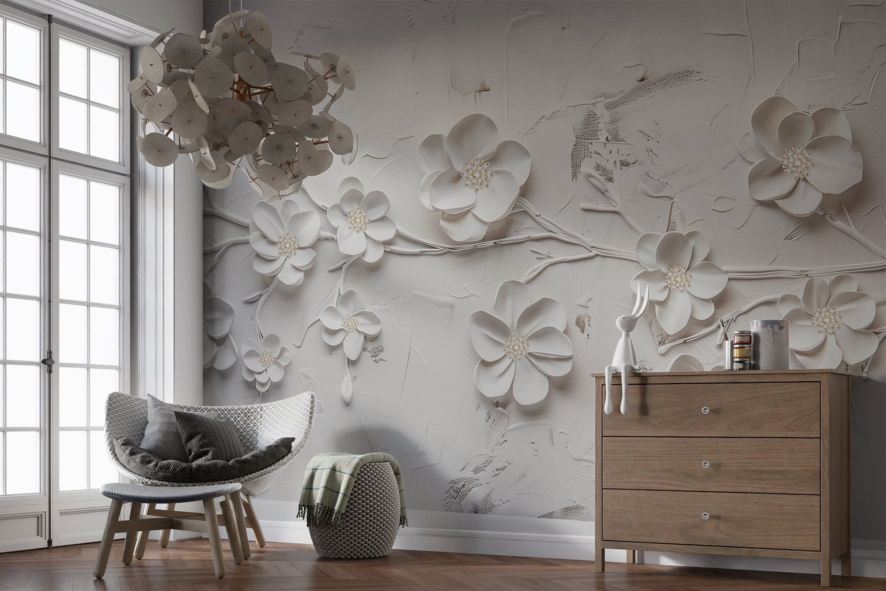 Transform any space with the “White Flowers on a White Surface” wall mural. It’s like inviting a serene garden indoors, where simple elegance reigns. Imagine walking into your room and feeling a soft, fresh breeze, even when the window’s closed. Those delicate white blooms seem to whisper, “Take a breath, relax.” The texture adds an inviting touch, making it a feast for the eyes. Plus, it blends perfectly with just about any decor, from cozy to modern. Whether it’s a lively chat with friends or a peaceful afternoon with a book, this mural sets the tone just right. Who knew a little bit of white could create such a big shift in vibes? Perfect for the nature lover wanting a splash of calm!
