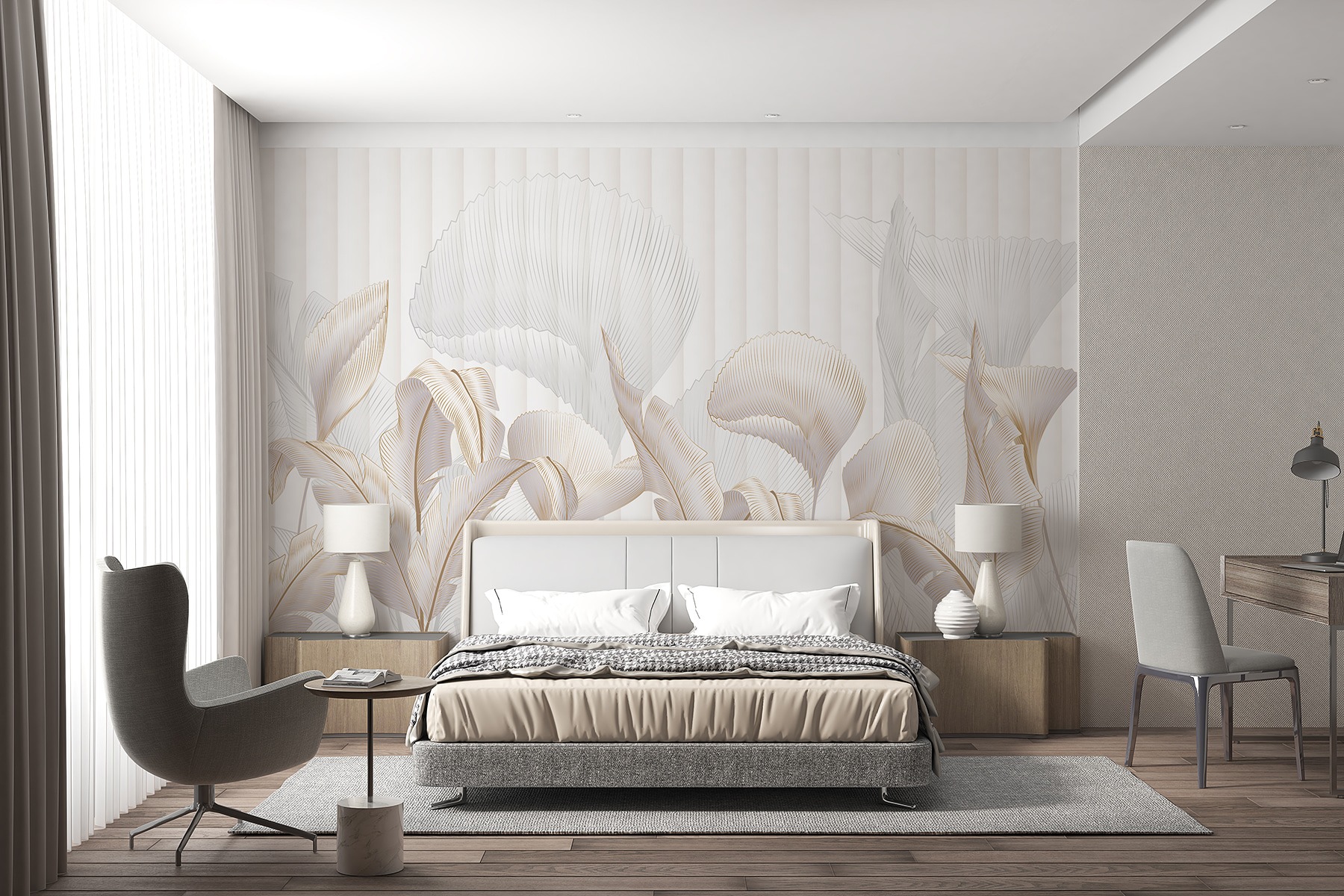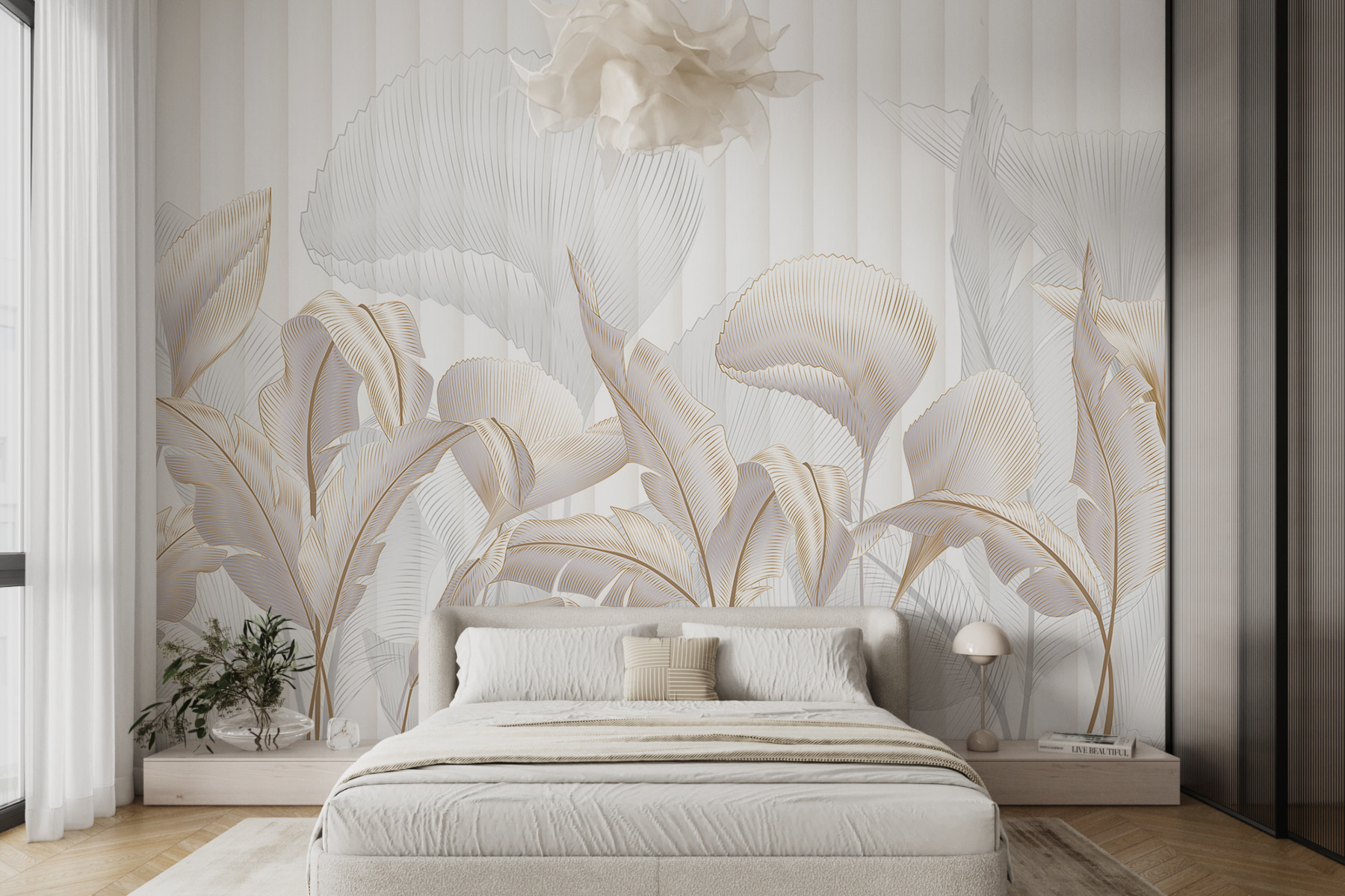 Transform your space into a slice of nature’s paradise with this stunning “Elegant Leaves” wall mural. It’s like inviting a gentle breeze and a hint of sunshine right into your living room. The delicate details capture the essence of nature, with soft leaves dancing in the background—perfect for daydreaming or those moments of quiet reflection. Picture curling up with a good book, surrounded by these graceful designs, where every glance sparks joy. This mural adds a touch of sophistication but remains cozy enough to feel at home. It’s a subtle reminder to breathe, relax, and enjoy the beauty around us. Who knew walls could whisper such elegance?