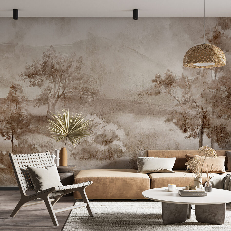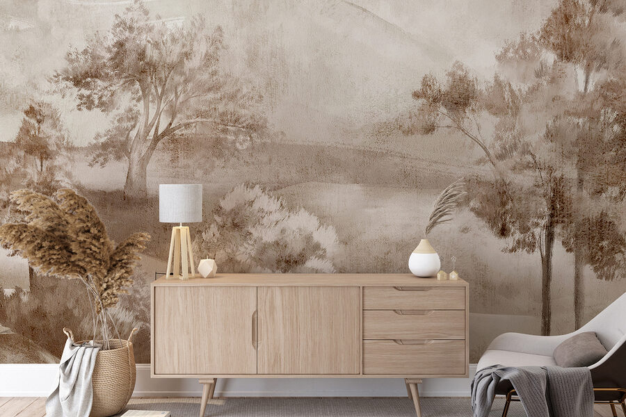 Step into serenity with this wall mural, “Landscape with Trees and Bushes.” Imagine transforming a plain wall into a peaceful retreat that whispers stories of nature. The soft, earthy tones offer a calming vibe—perfect for cozy evenings or inspiring creativity. You can almost hear the rustling leaves! It’s like bringing a slice of the great outdoors indoors, minus the bugs. Friends might just ask where the fresh air is coming from! Whether it’s for a living room or a quiet reading nook, it adds warmth and a touch of whimsy to any space. Let nature wrap you in its gentle embrace daily!