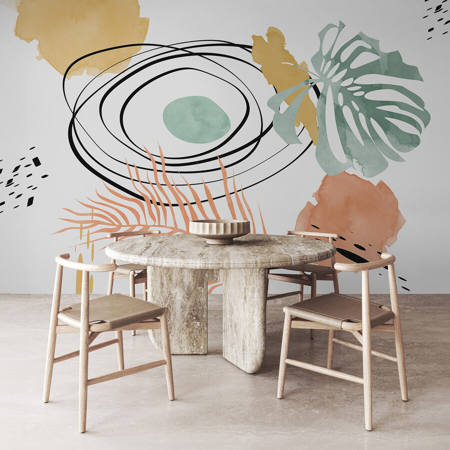 Transform any space into a serene escape with this abstract botanical watercolor mural. Imagine waking up surrounded by soft hues of green and peach, like a cozy Sunday morning. It’s got this playful vibe—curvy lines dance with splashes of color, making walls feel alive. Perfect for a reading nook or that awkward hallway that needs a sprinkle of charm. Friends might walk in and think, “Wow, did a garden just bloom here?” It’s not just decor; it’s a little piece of joy right on your wall. Catch a glimpse, and you’ll instantly feel a wave of calm wash over you. Who knew art could be so uplifting?